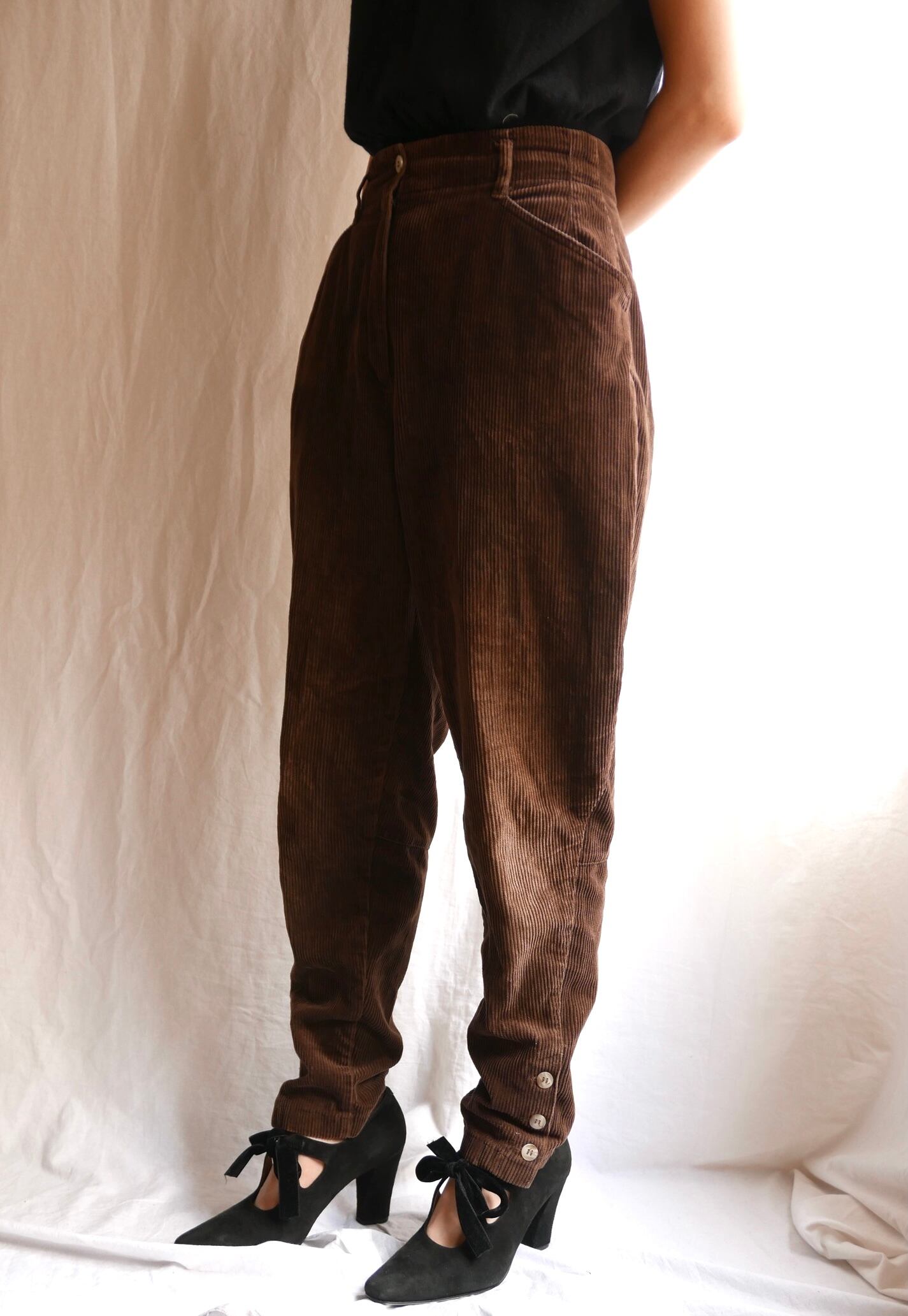 French "Chocolate-Brown" Corduroy Jodhpurs Pants -Button Down-
