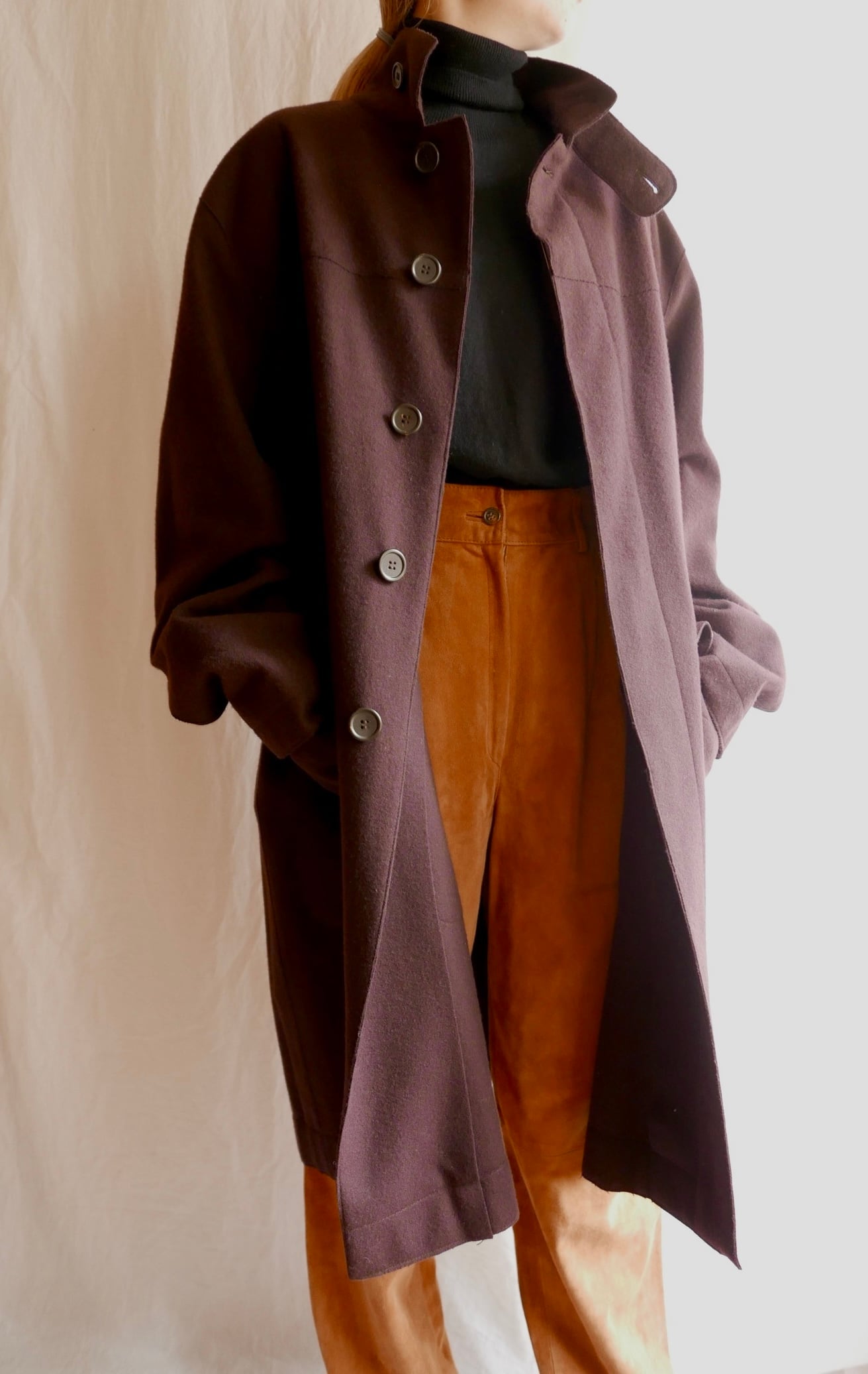 深みのあるパープルブラウンの色味がミステリアスな魅力のFENDI ロングウールコート!