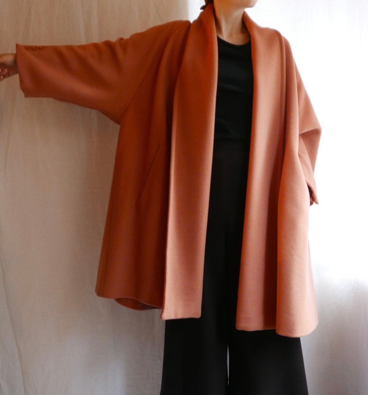 オレンジがかったサーモンピンクのような色味がとても美しい、Italy Vintage コート!