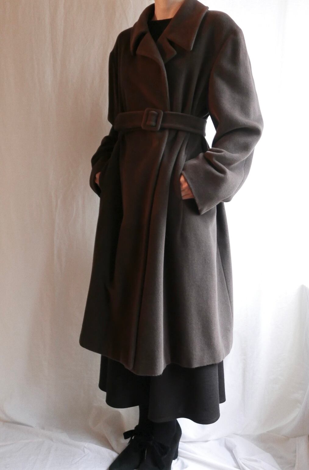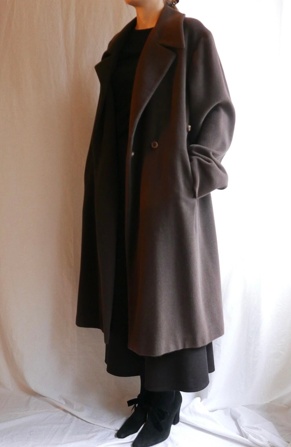 パープルがかったブラウンが上品ながらもユニークなカラーリングのJIL SANDERロングコート!