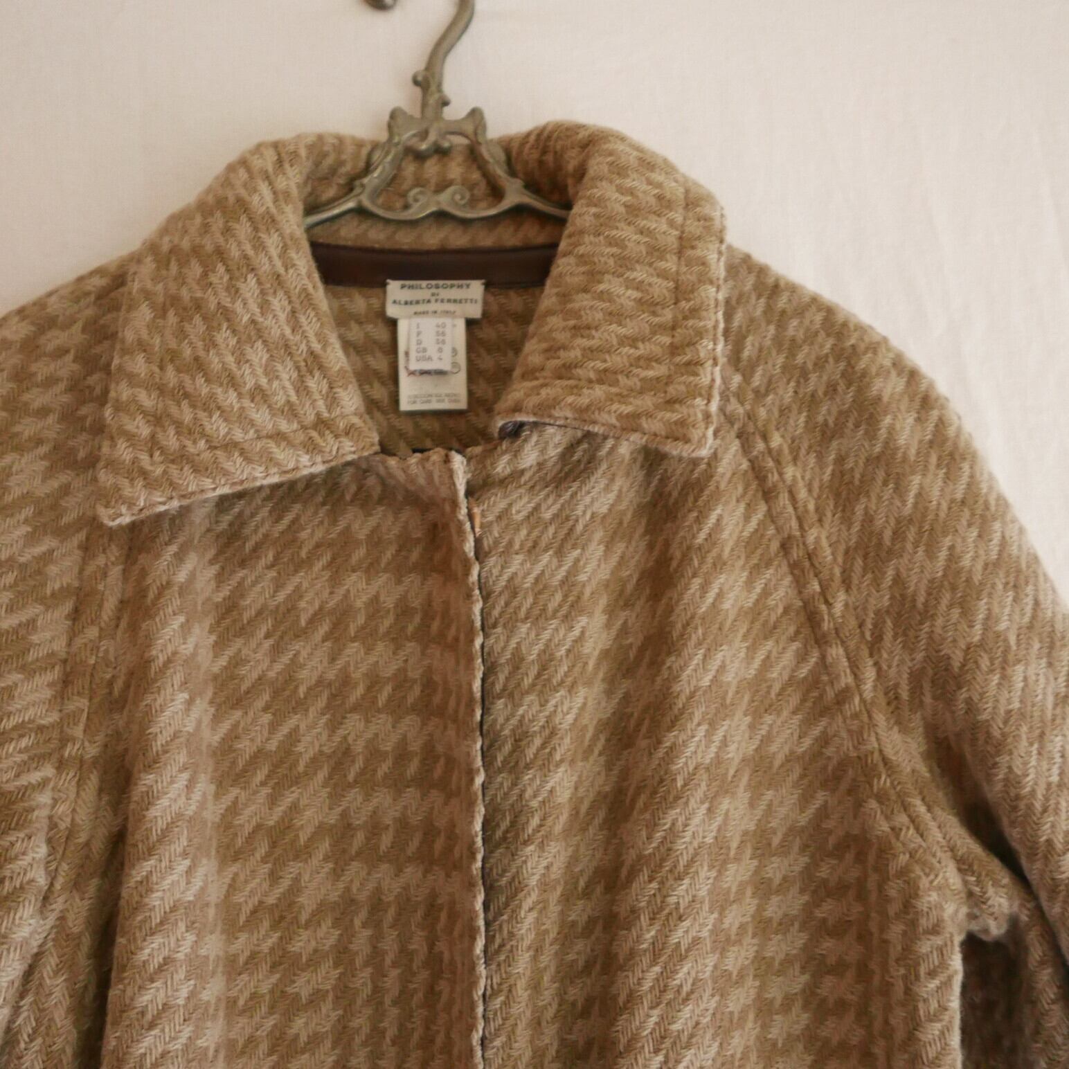 細身の、肩周りがフェミニンなAラインのシルエットで、70’s女優風。。
