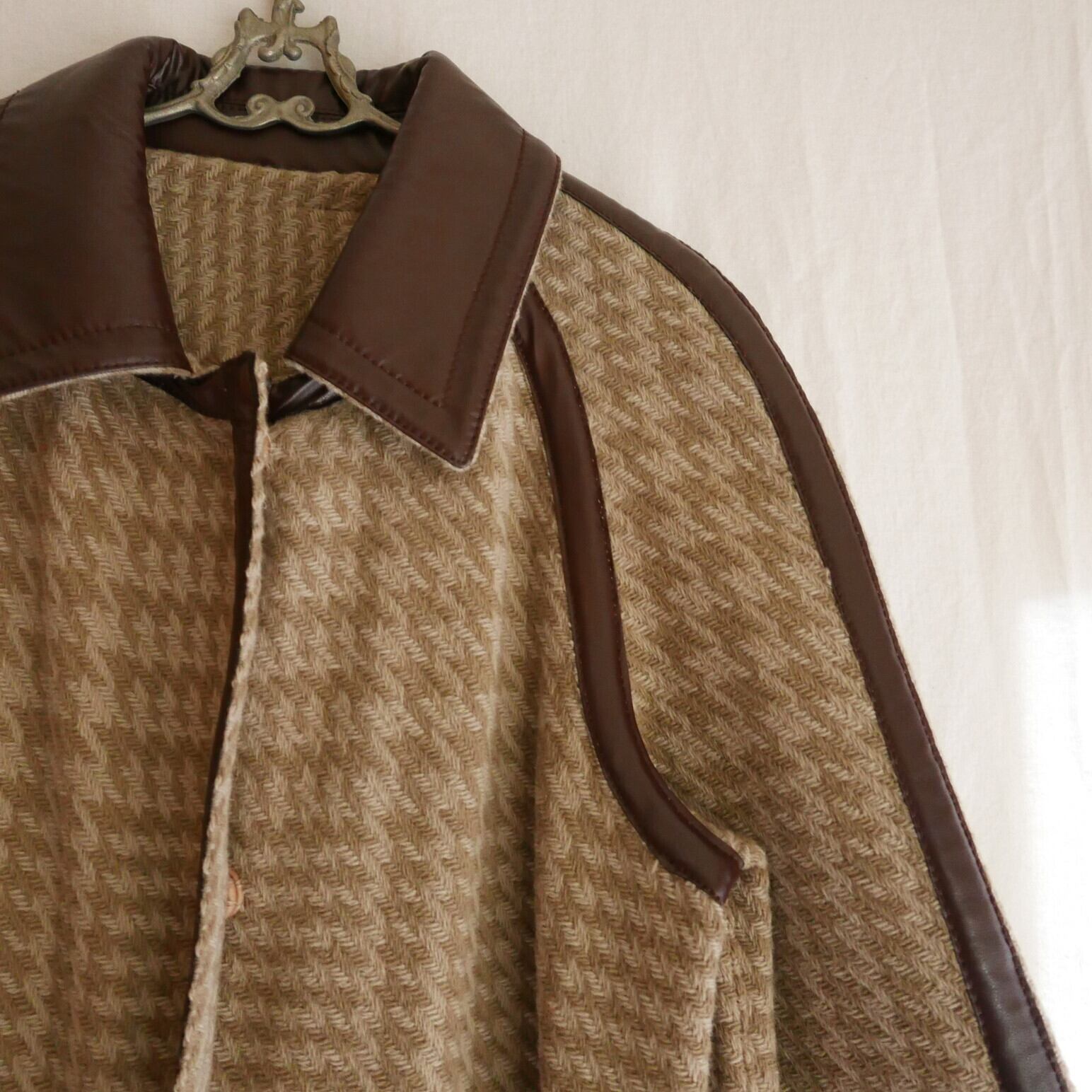 くすんだベージュの千鳥格子柄にレザーのパイピングがメリハリのあるデザイン。