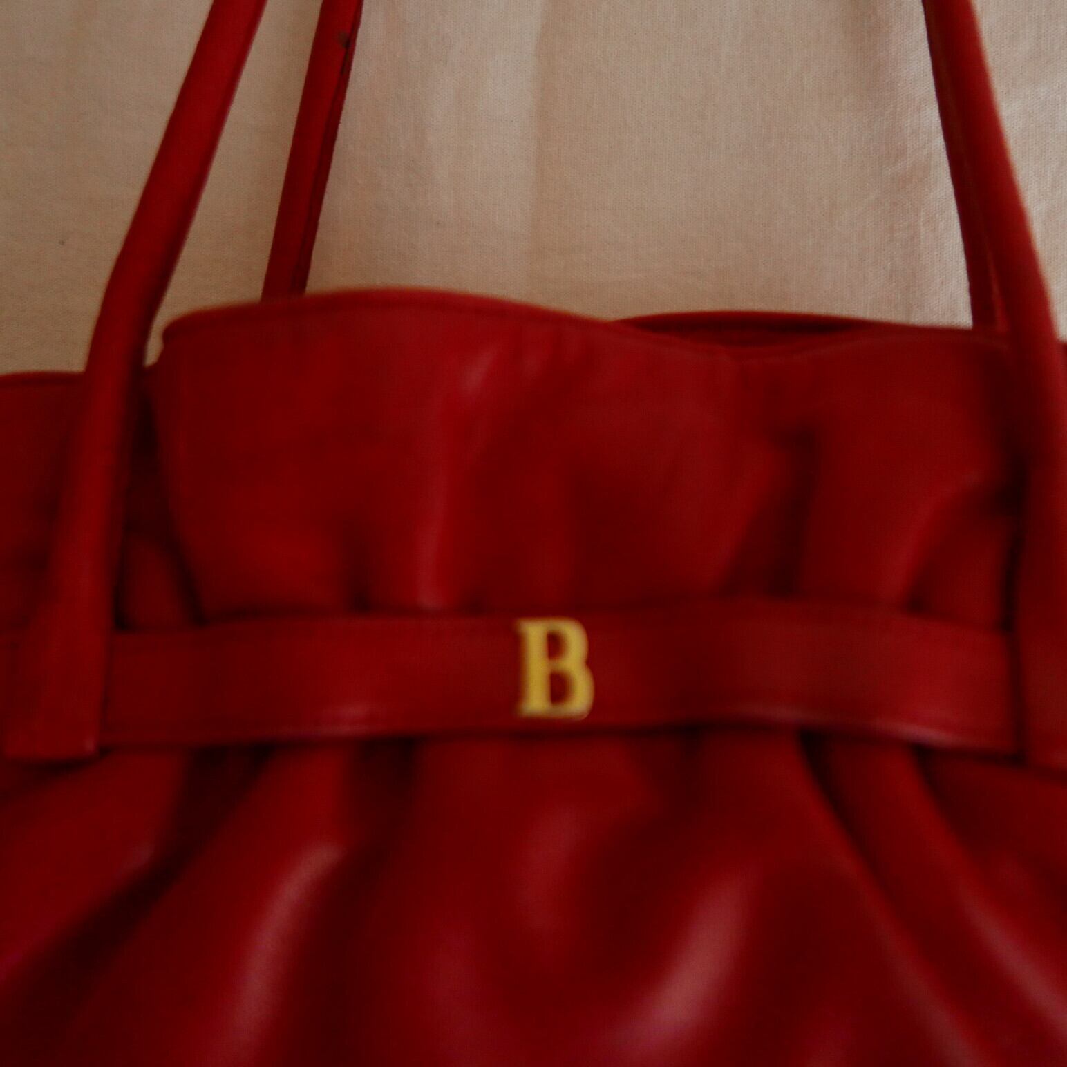 真っ赤でくたっとしたレザーにゴールドの"B"ロゴが映えるBALLYのショルダーBag!