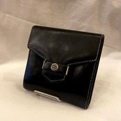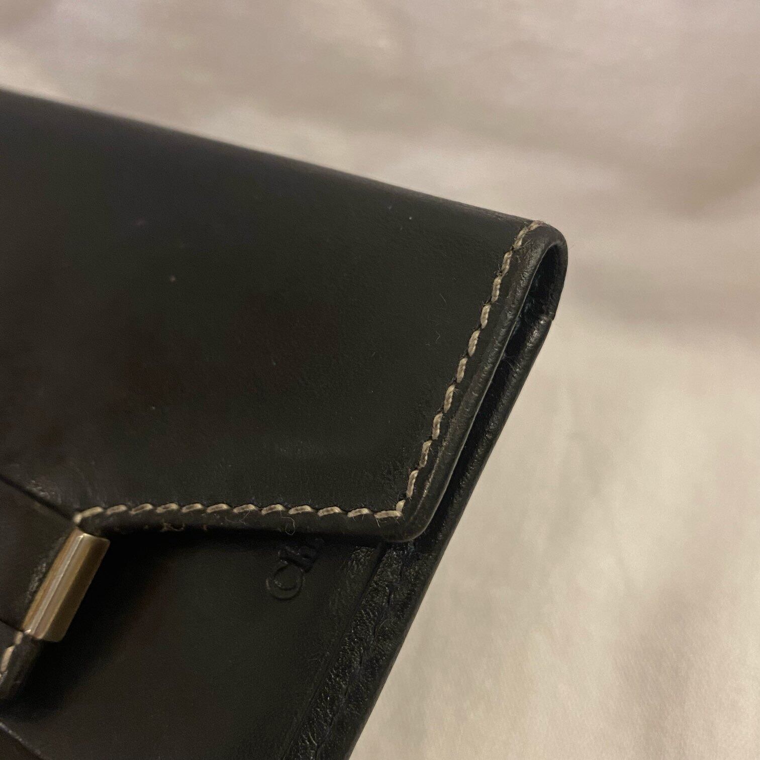 つやのあるブラックレザーに白のステッチが映えるDIORの折りたたみ財布