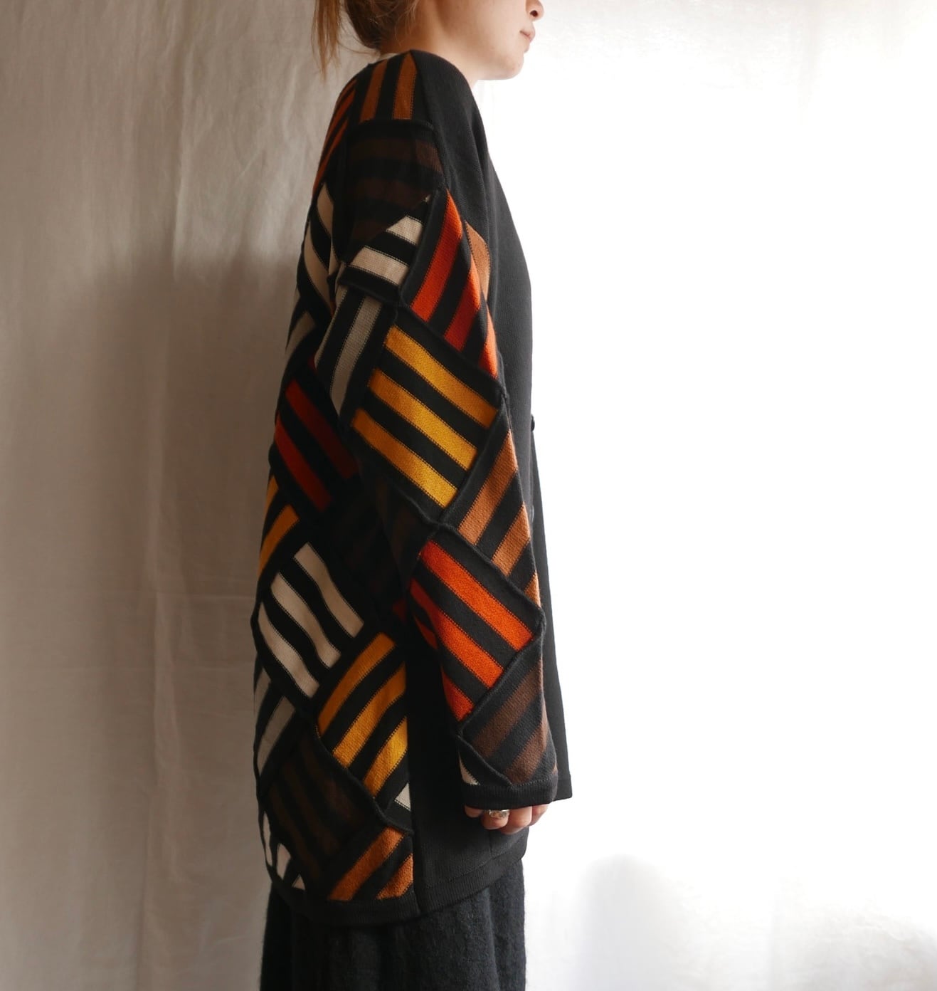 オレンジトーンのマルチボーダーがユニークなSONIAのロングカーディガン