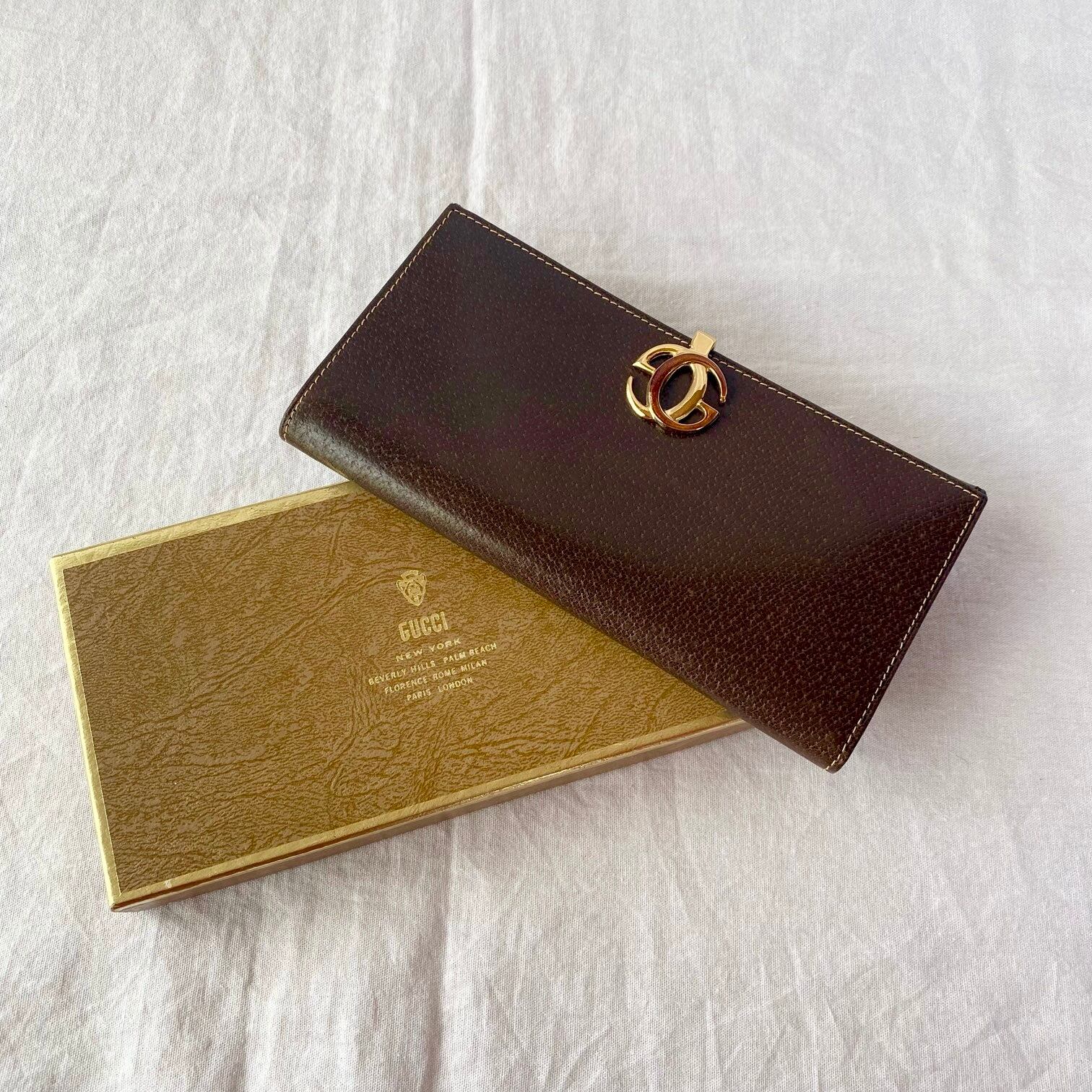 メタルゴールドの凝った2色GGロゴが映えるGUCCI 70'sの長財布
