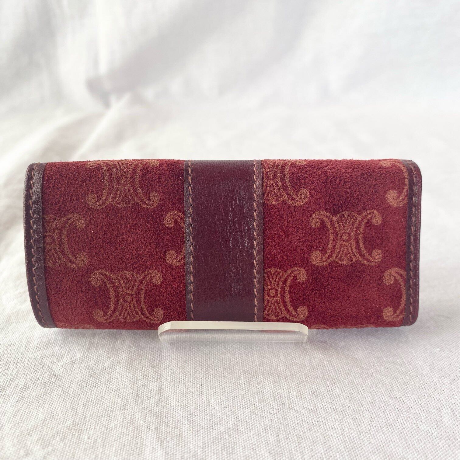 マカダムがレイアウトされた、質感の高いボルドーカラーのスエード×レザーもスペシャルなCELINEキーケース!