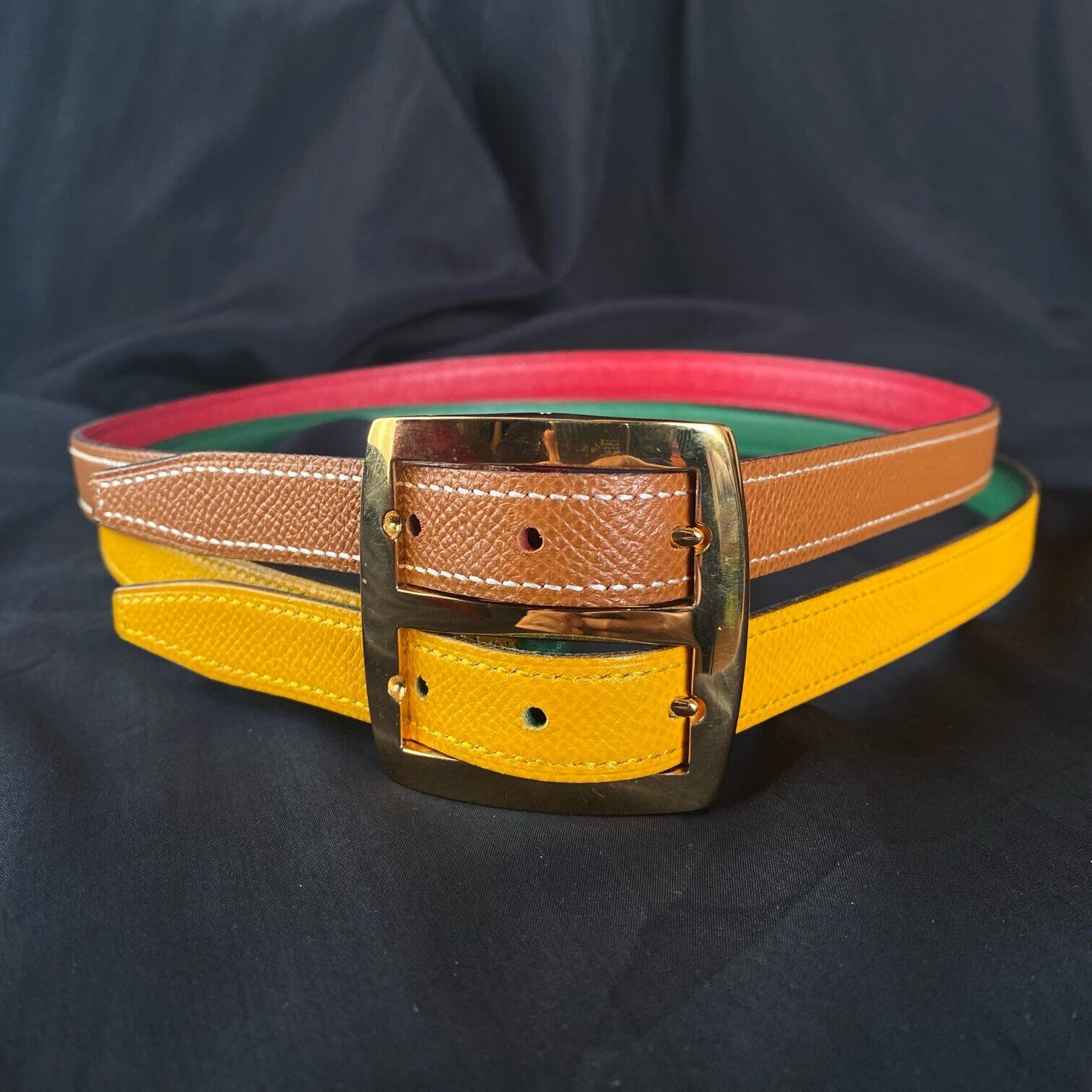 HERMES "Quad(4)-Color" Leather Reversible Belt -Dead Stock!- "Super RARE!"