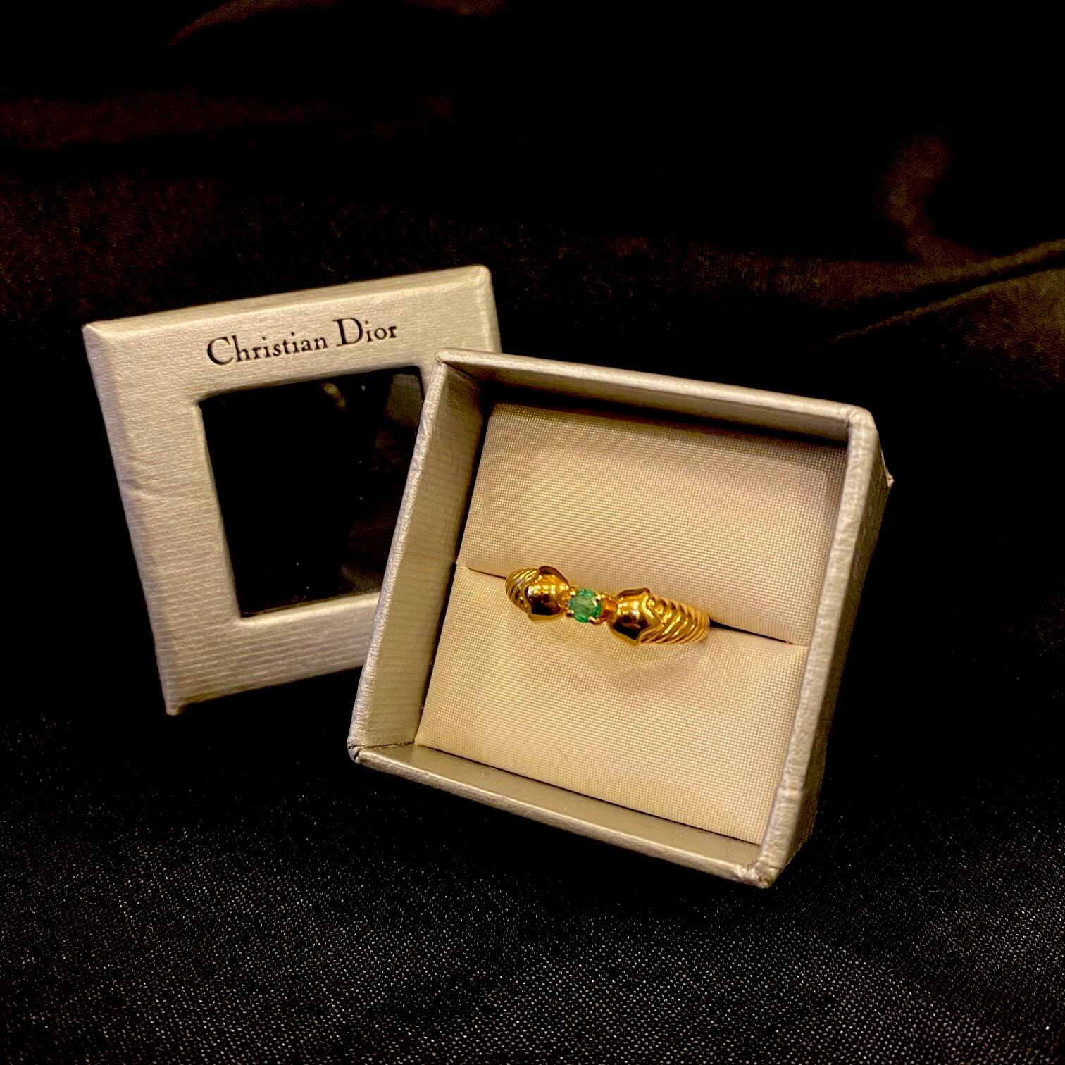 DIOR "Ribbon Motif" "Gold/K18×Emerald" Ring