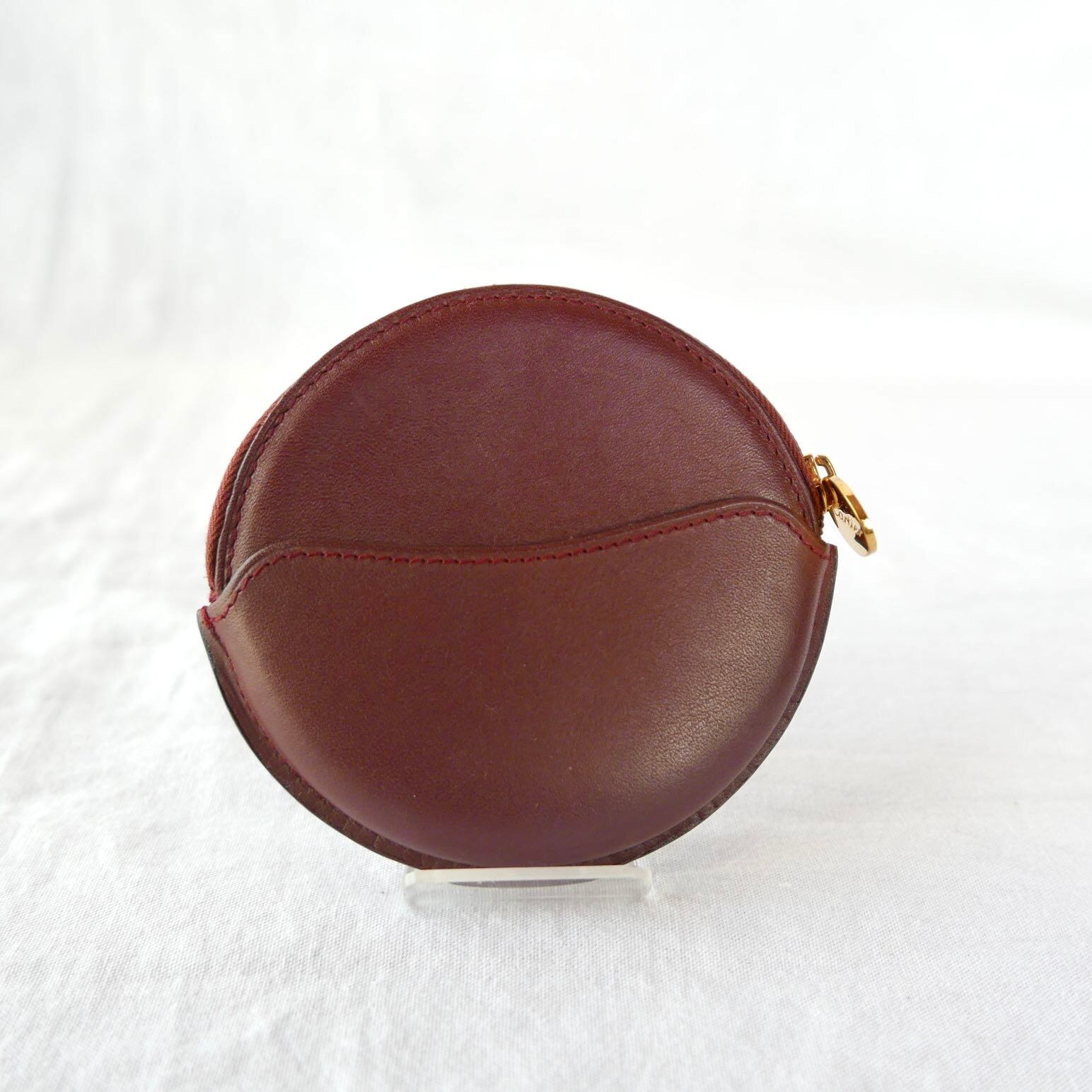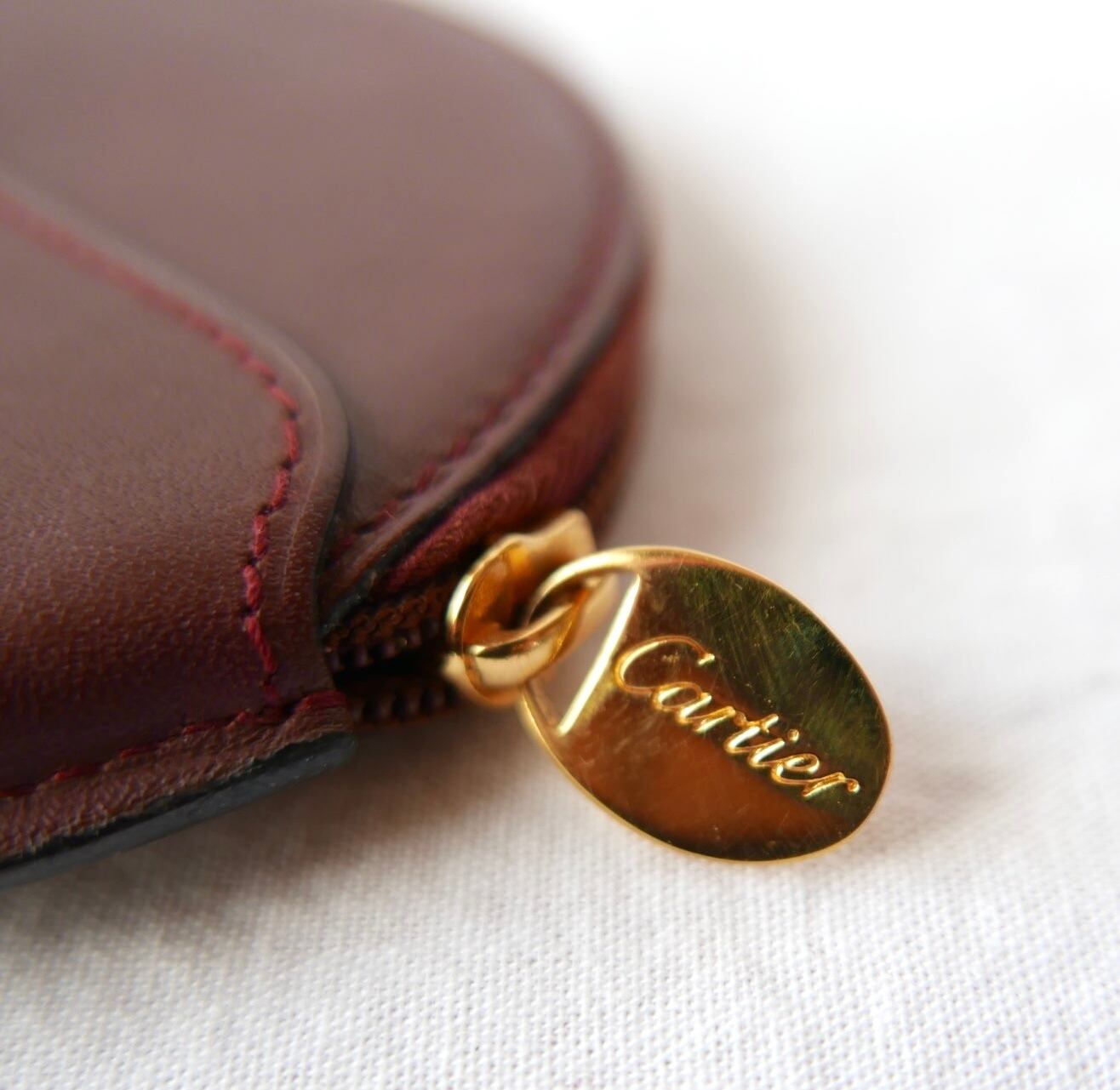 CARTIER Bordeaux Leather Round Coin Purse
