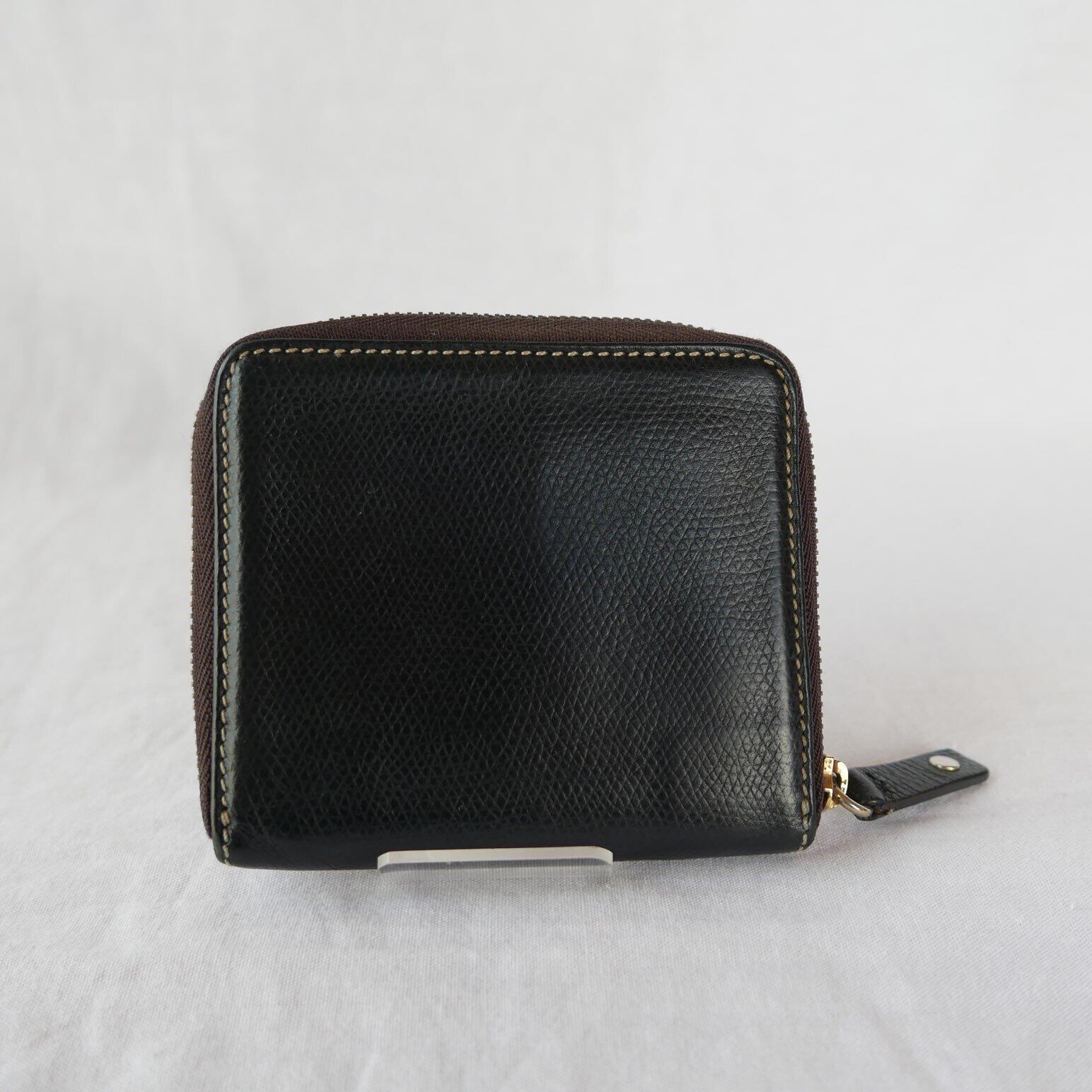 凹凸のあるブラウンレザーに白ステッチが映えるロエベのコインケース