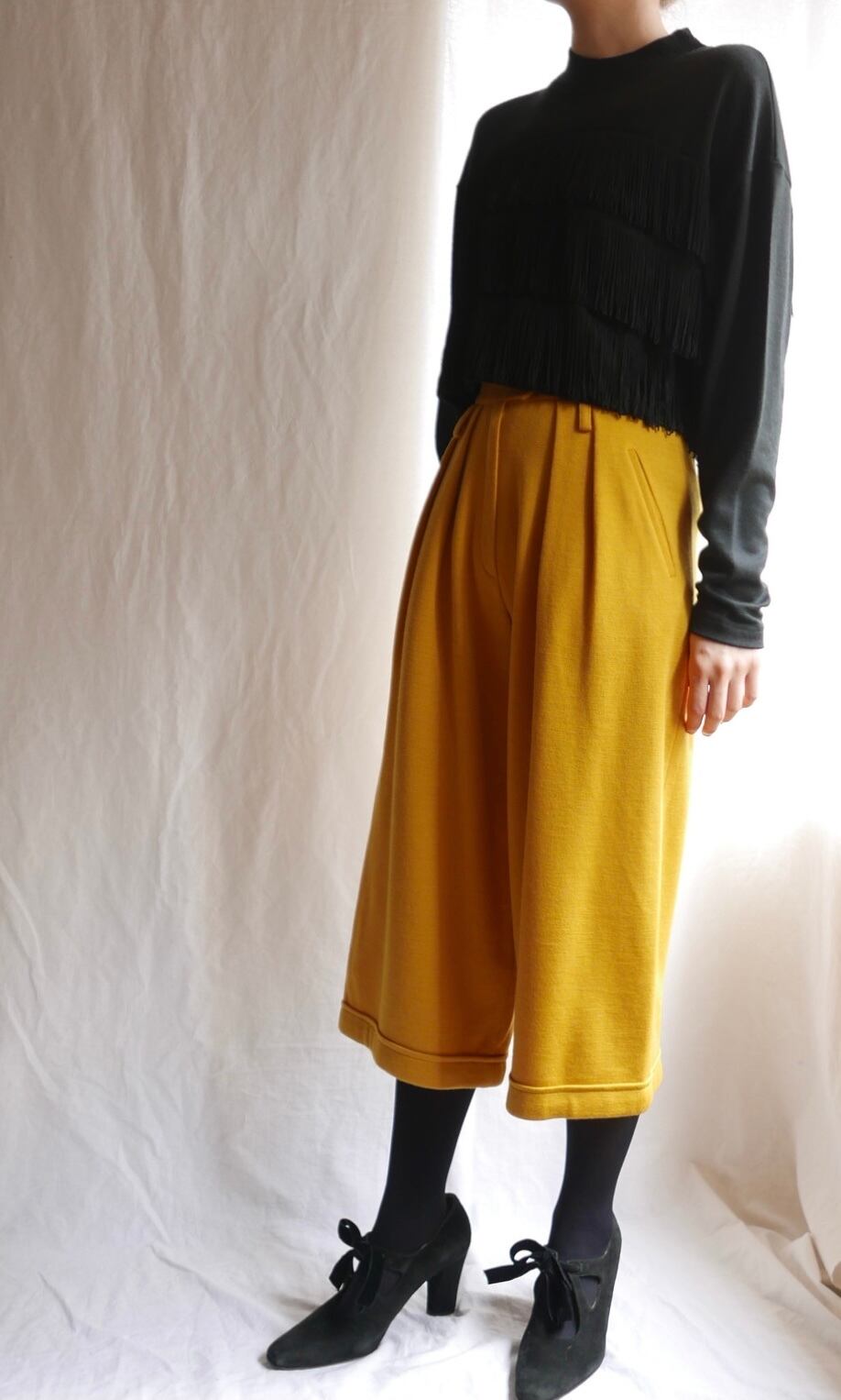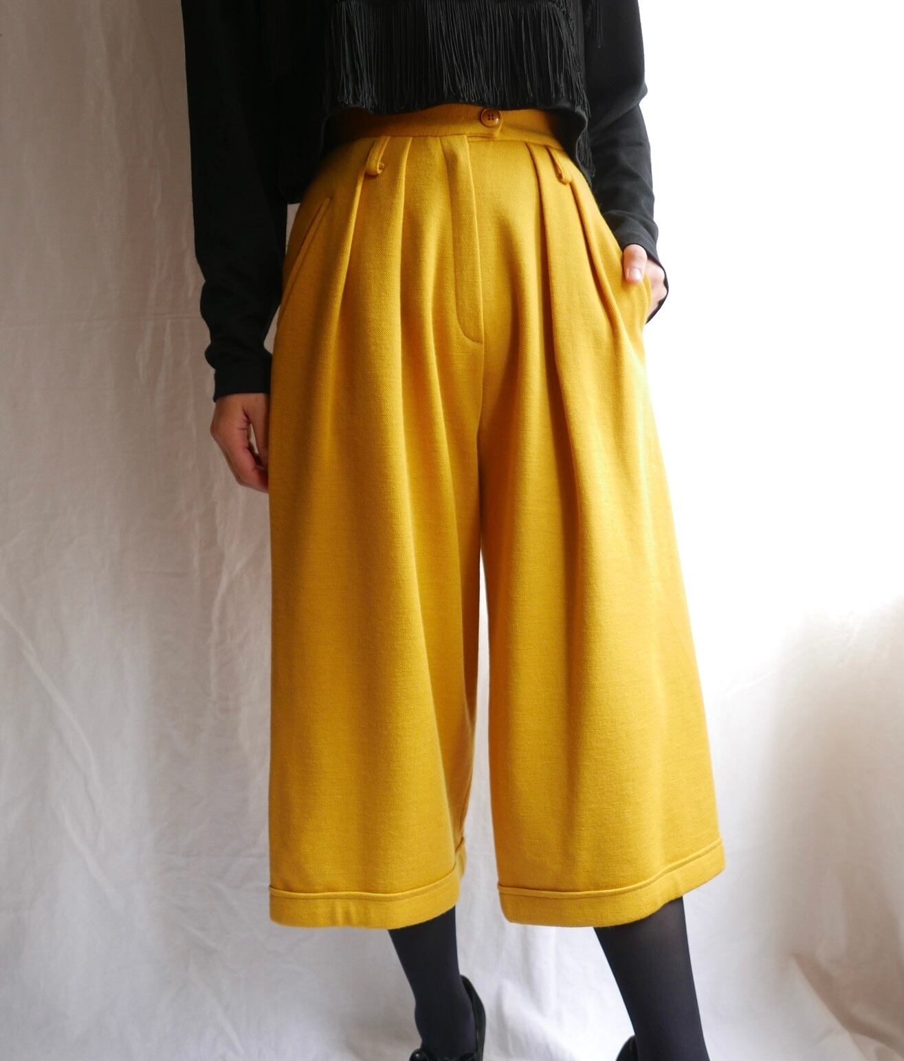 パキっとしたマスタードカラーがはつらつとした印象のSONIAのニットガウチョパンツ!