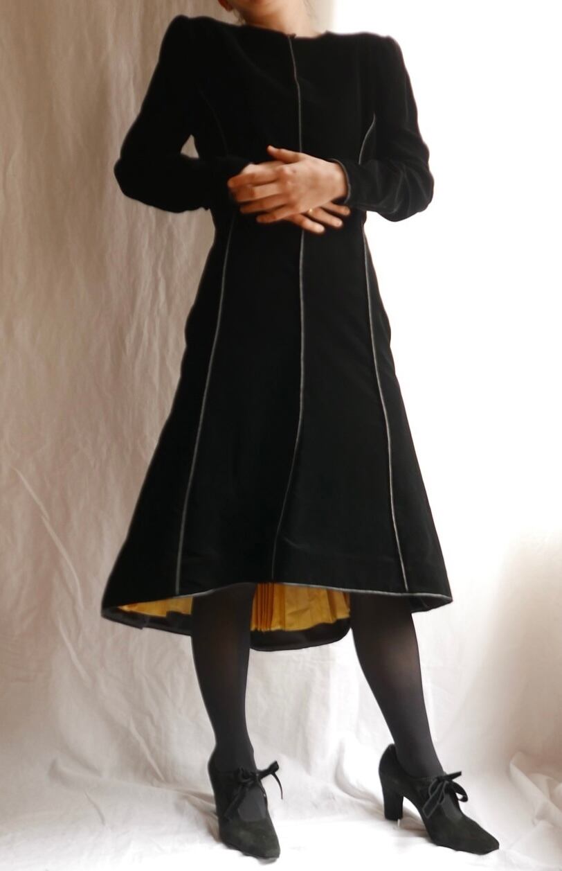 少し短くなった前裾から、ちらっと見え隠れするイエローのパニエがcuteなVALENTINOのベロアワンピース!