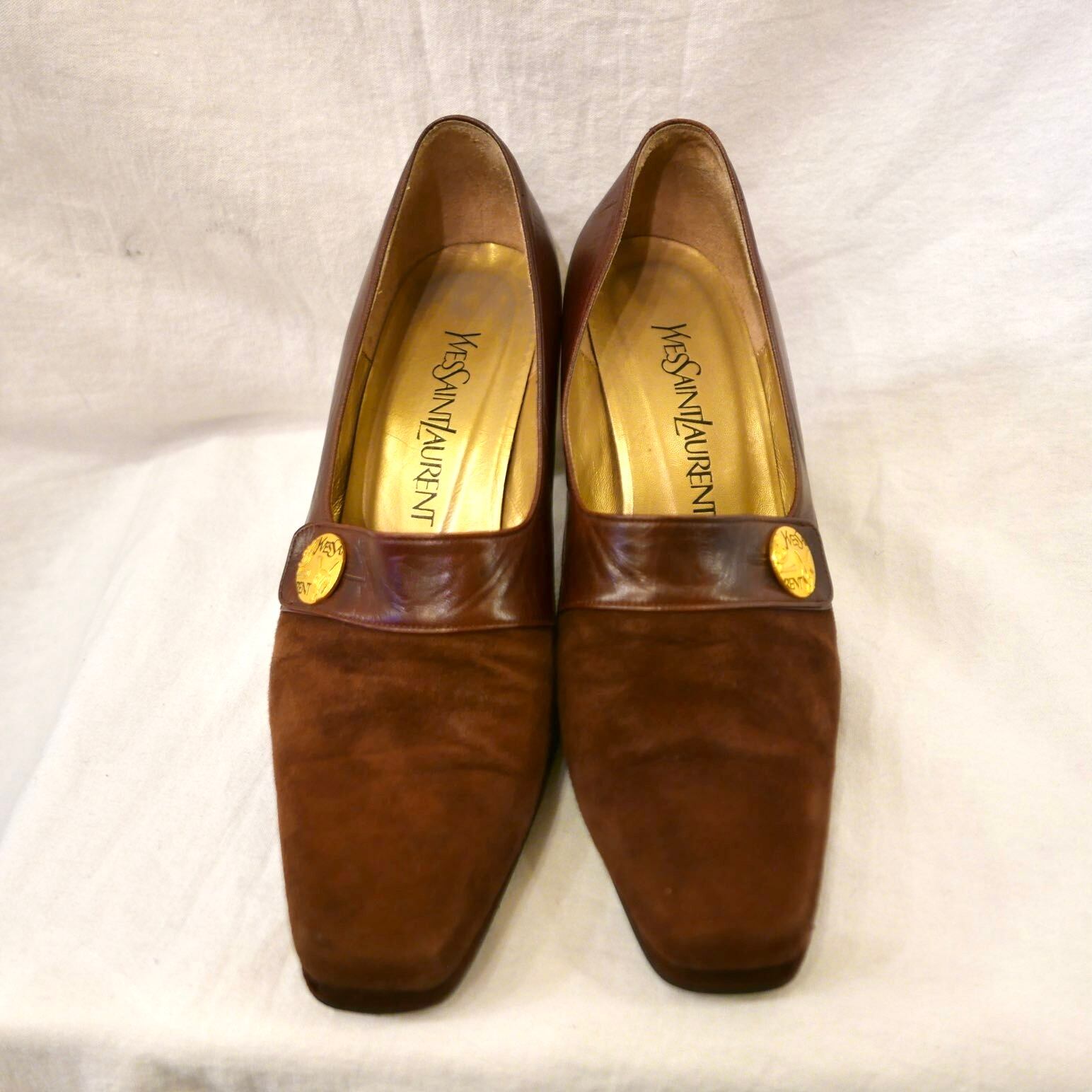 スエード×レザーの切り替えがユニークなYSLパンプス
