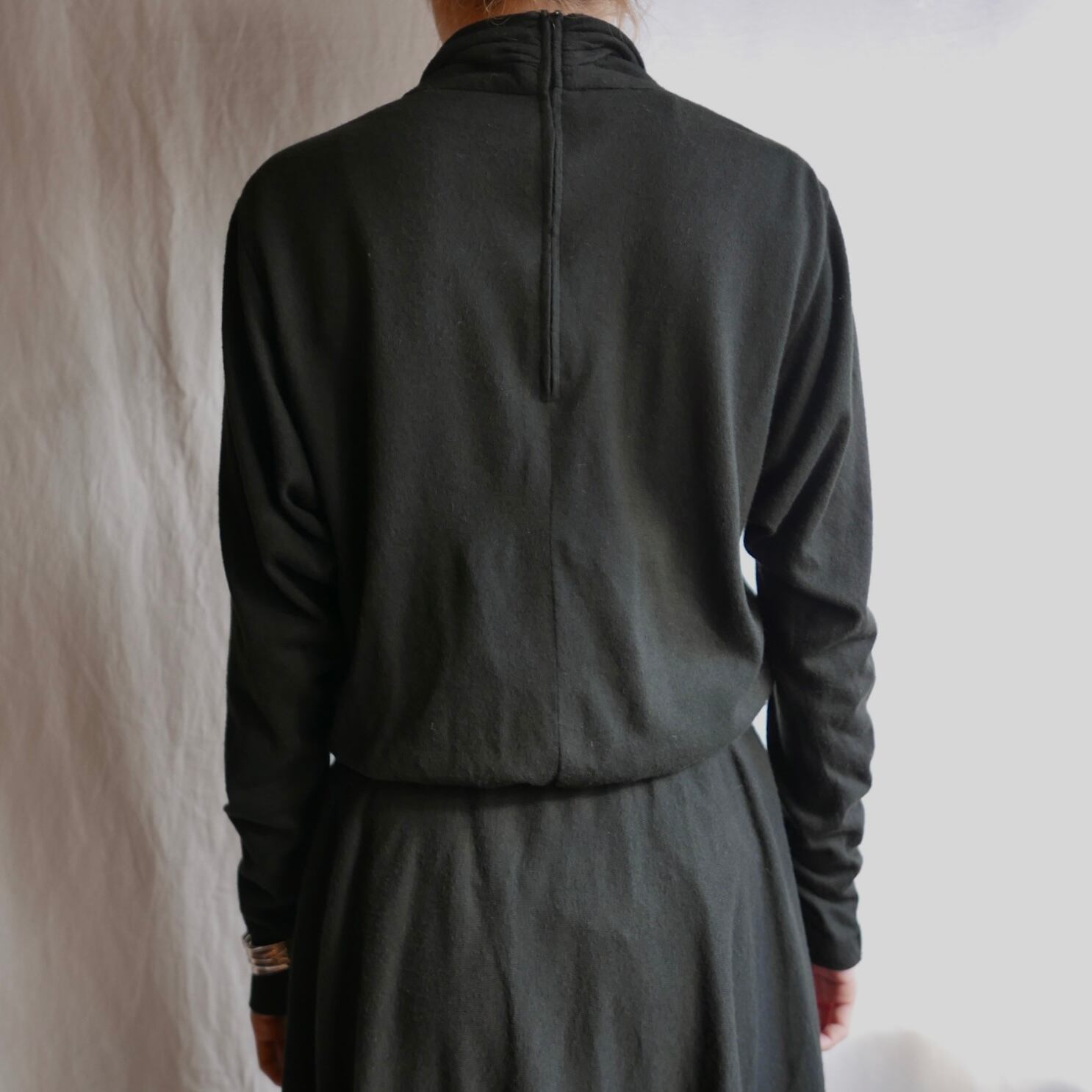 ハイネックにロング丈がシックなUSvintageブラックワンピース