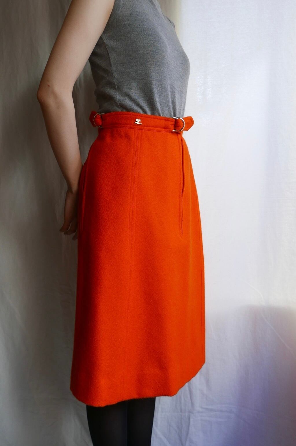 COURREGES 1960’s "Vivid-Orange" Tight Skirt -Rare!!-
