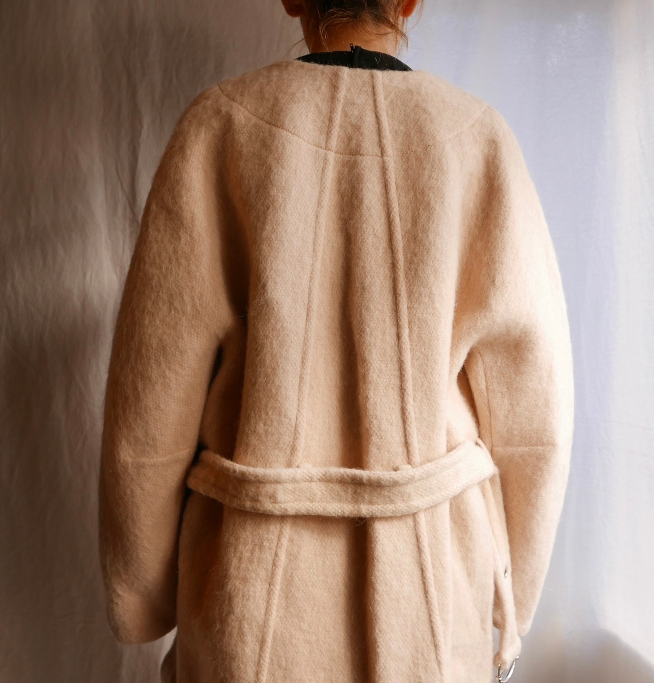 後ろの切り替えや、袖の大胆なタック、等による丸みを帯びたシェイプが、繊細に凝ったデザイン!その割にさらっとさりげない上品さがあります。