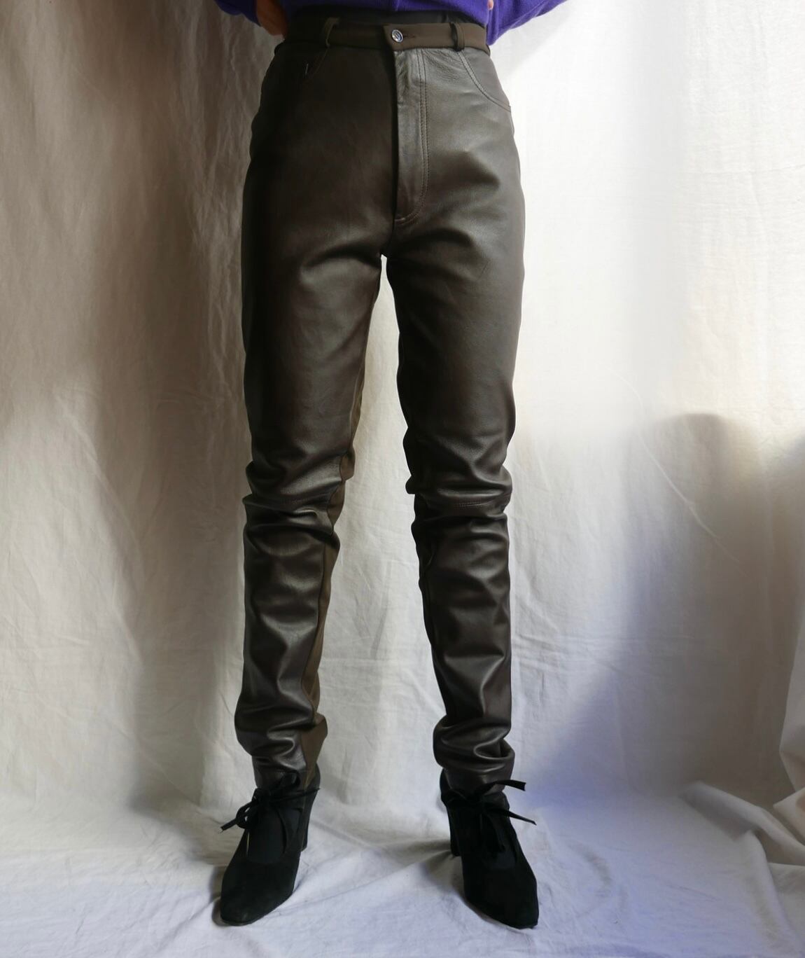 表はレザー、後はストレッチ素材と、前後異素材なのがユニークなパンツ