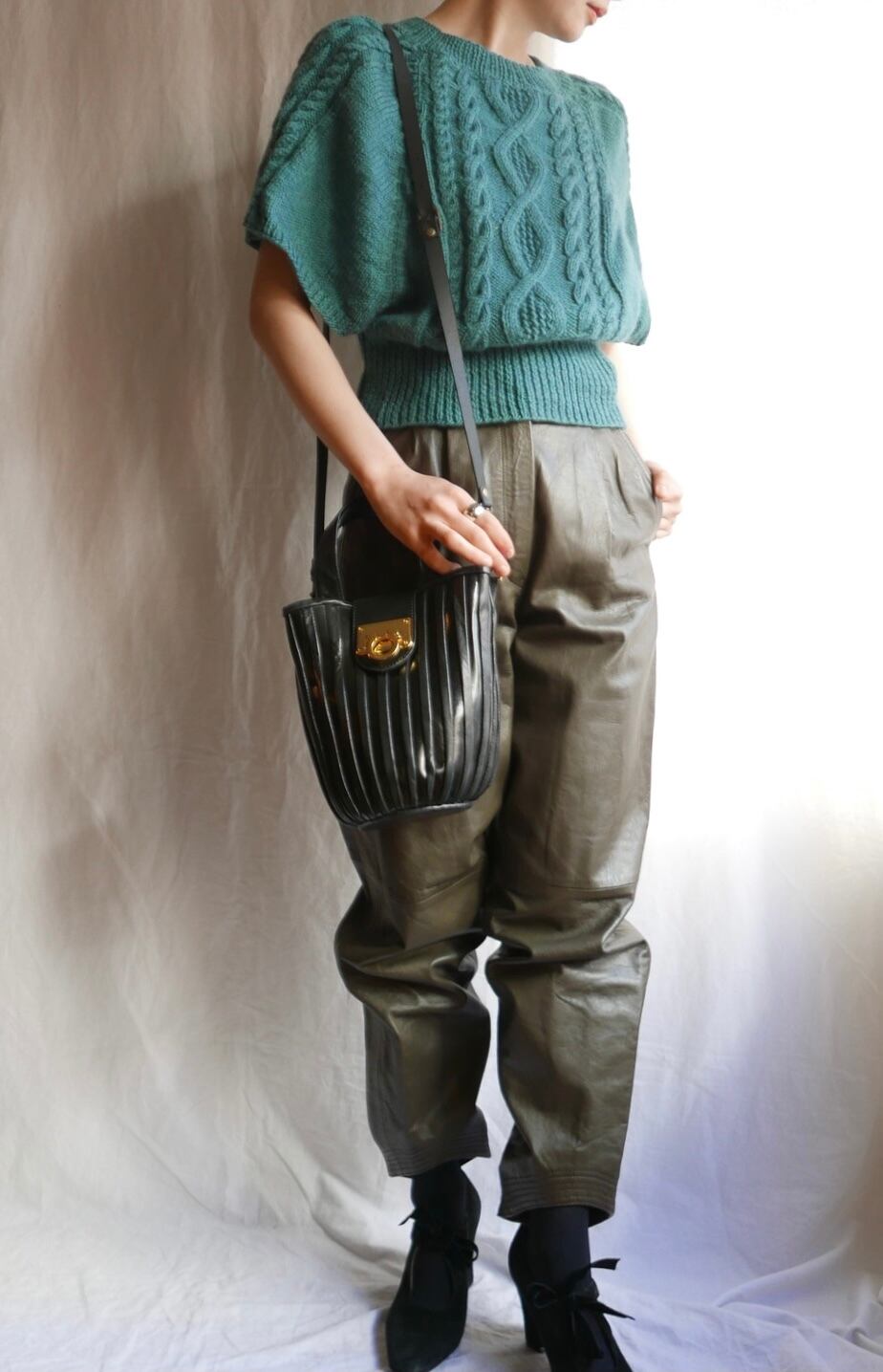 ゴールドの金具がアクセントなブラックレザーBag!