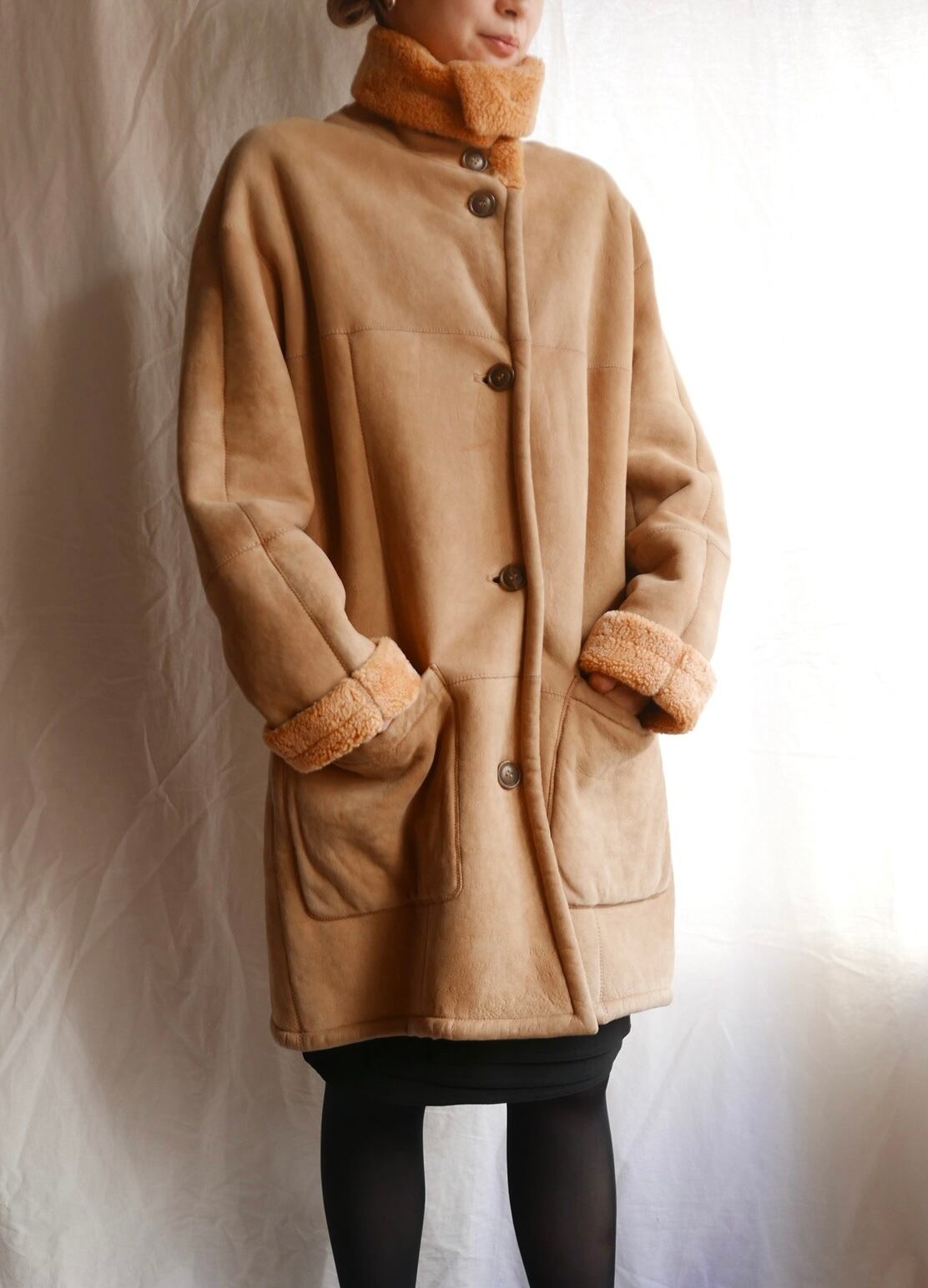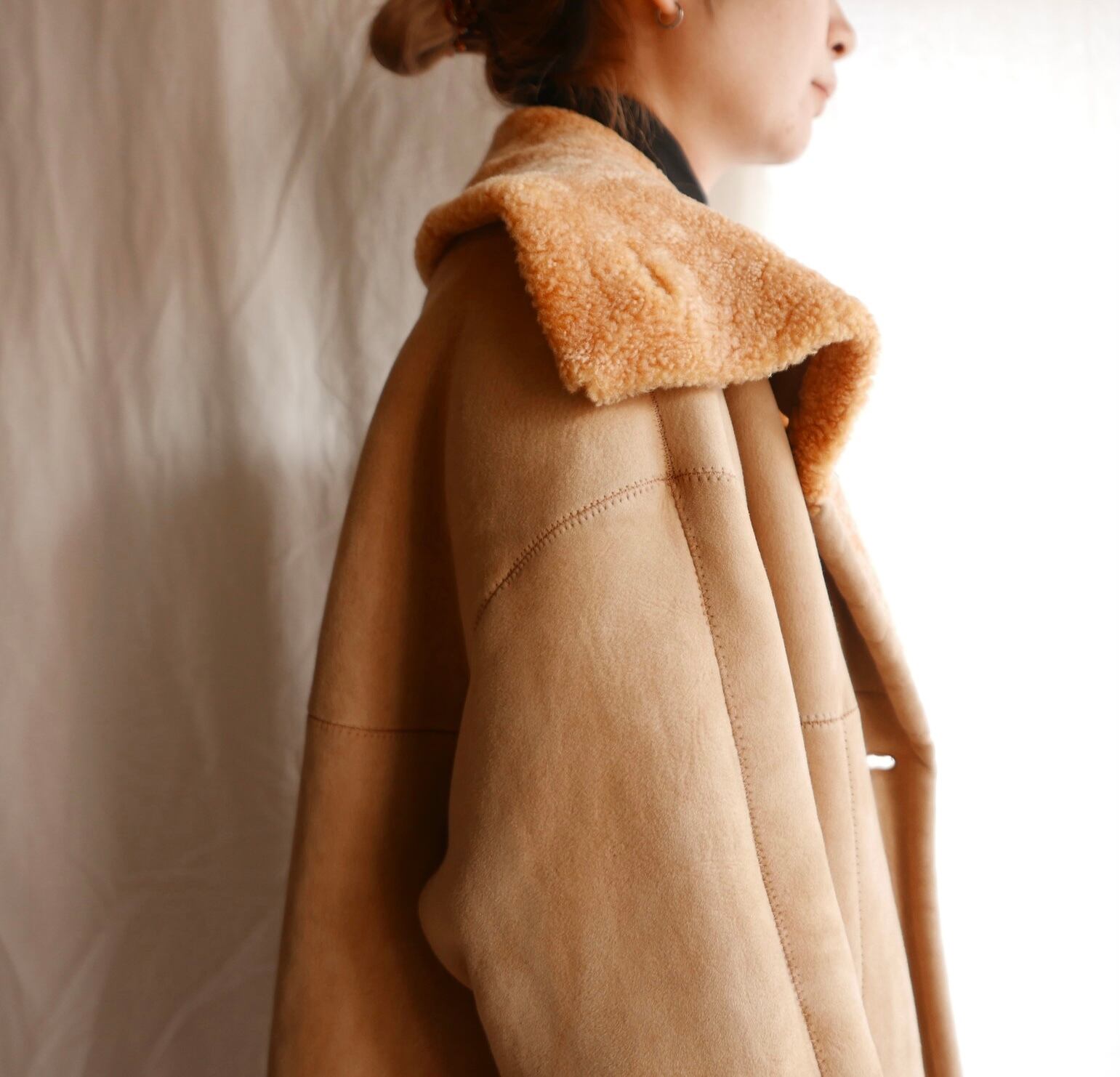 ミルクティーの様なカラーが柔らかい雰囲気のムートンコート