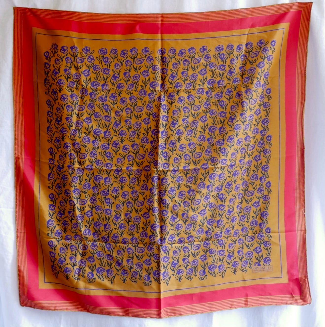 手描きのようなタッチの花柄が抜け感のあるデザインのGIVENCHYスカーフ!
