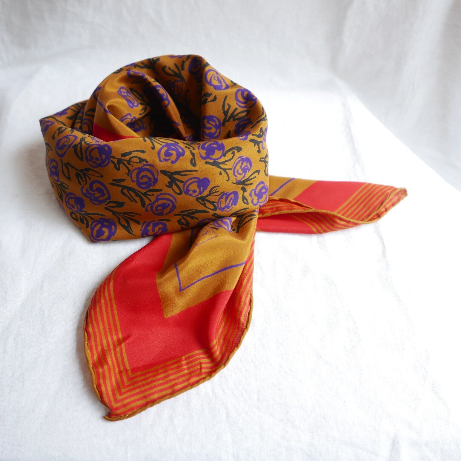GIVENCHY "Red×Purple×Gold Brown" Flower Motif Scarf