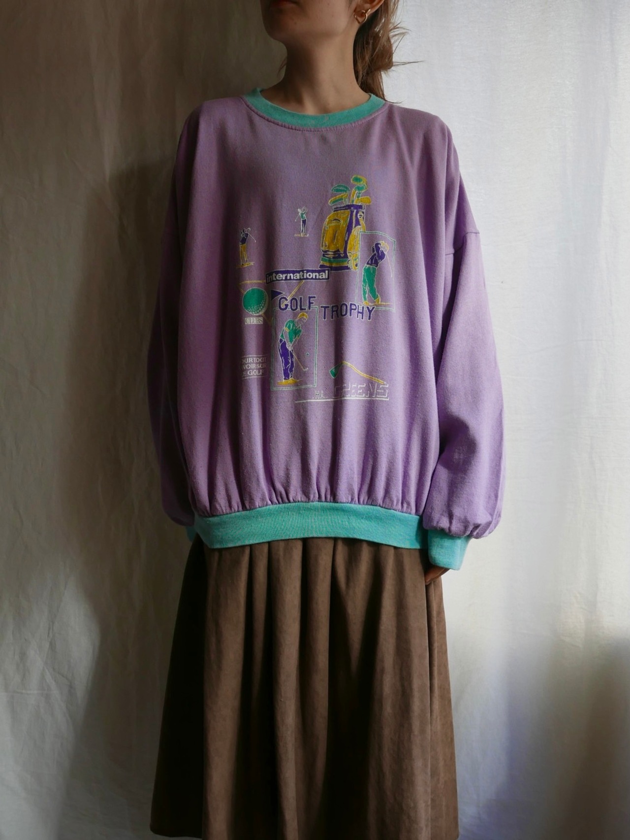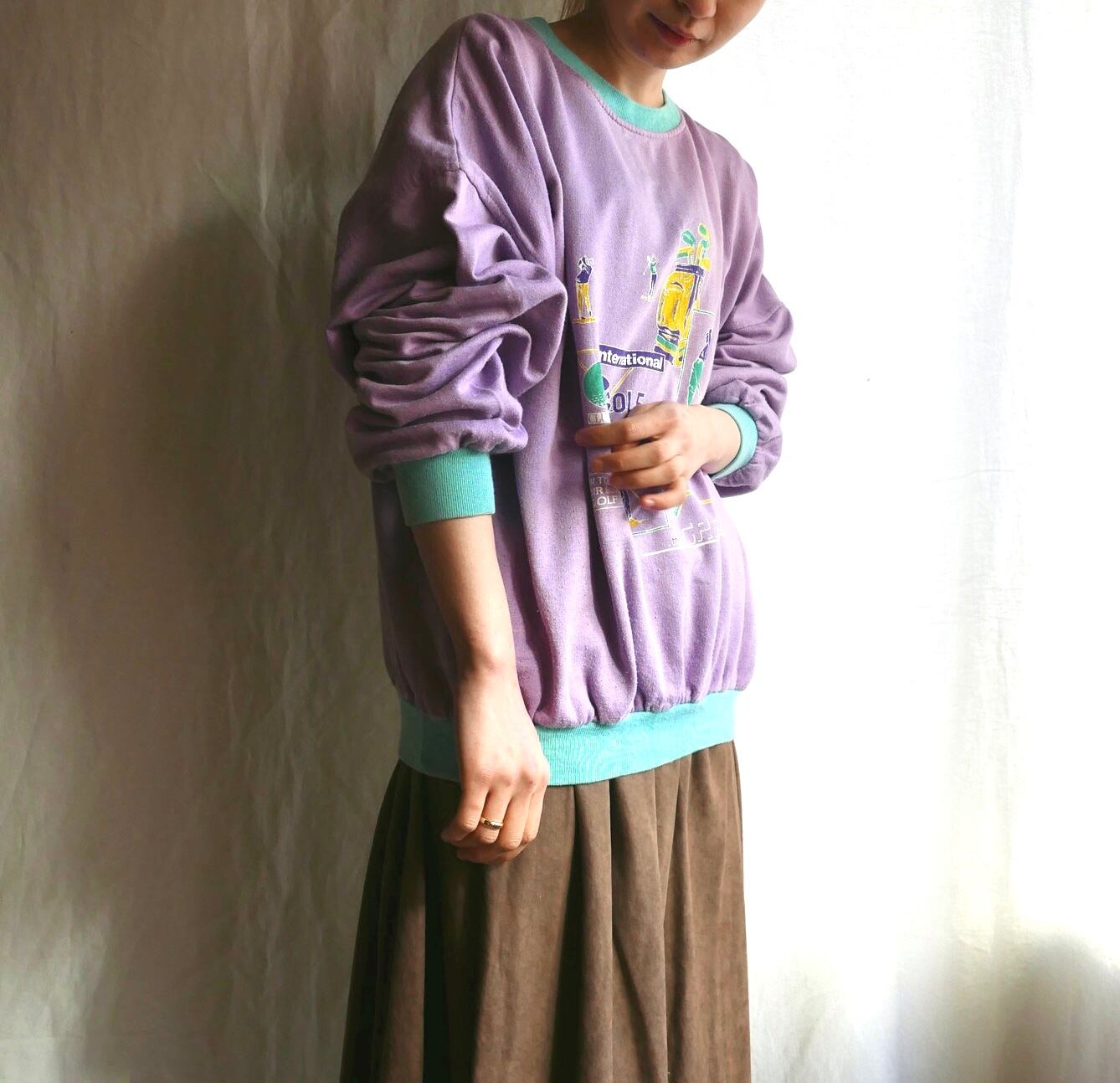 French 1980's "Golf Illust" Pastel-Purple Sweat