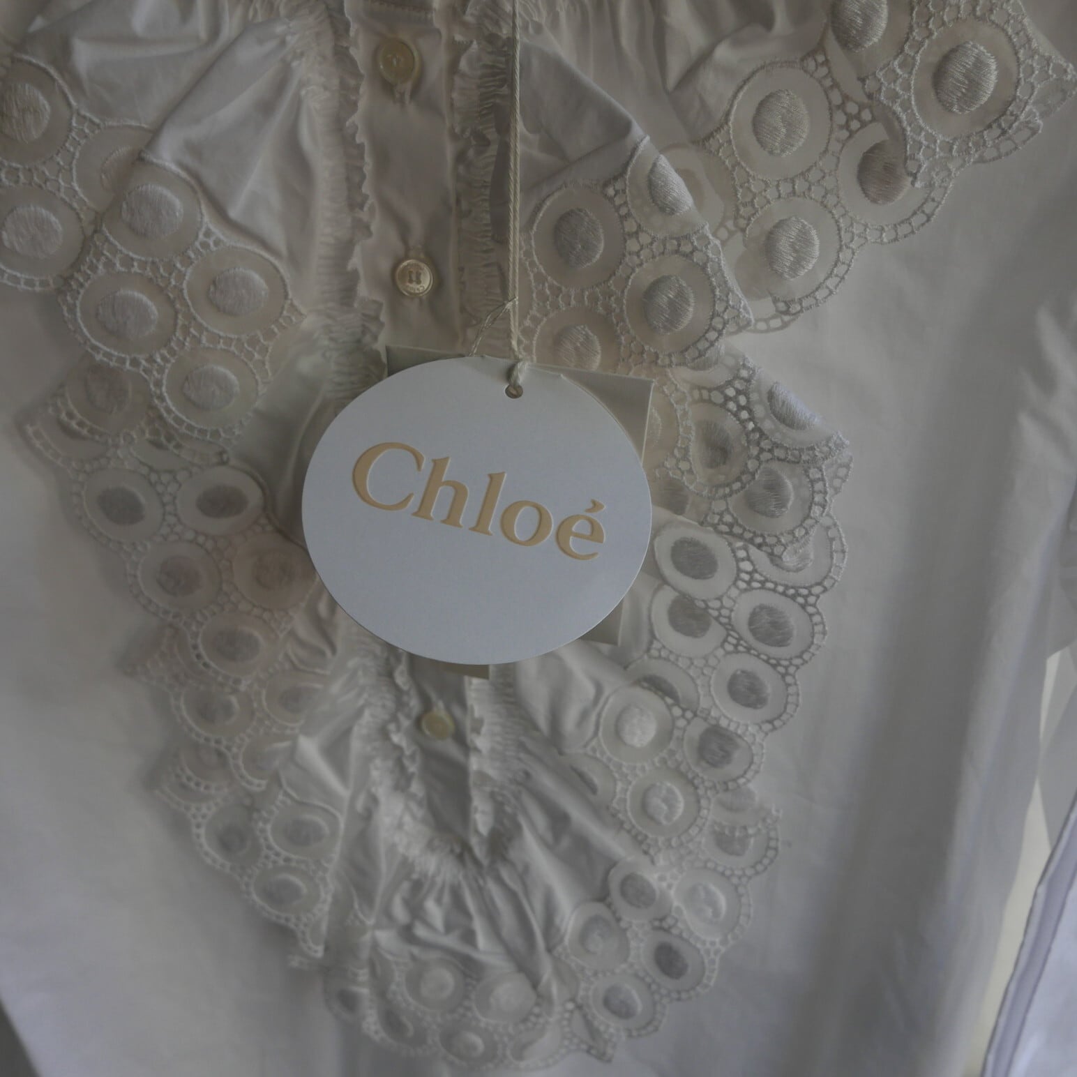 凝ったフリルレースがCHLOEらしい可憐さのスペシャルなホワイトコットンブラウス