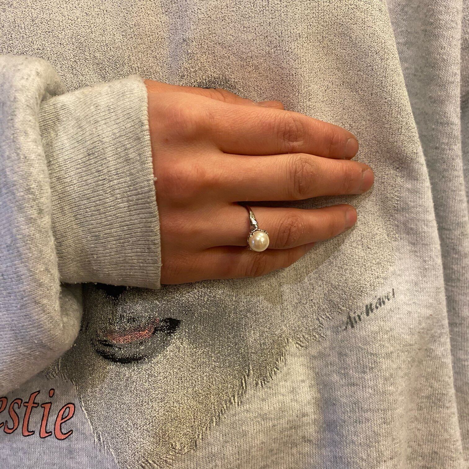 くすんだトーンの大粒パールがクラシックな佇まいのパールリング