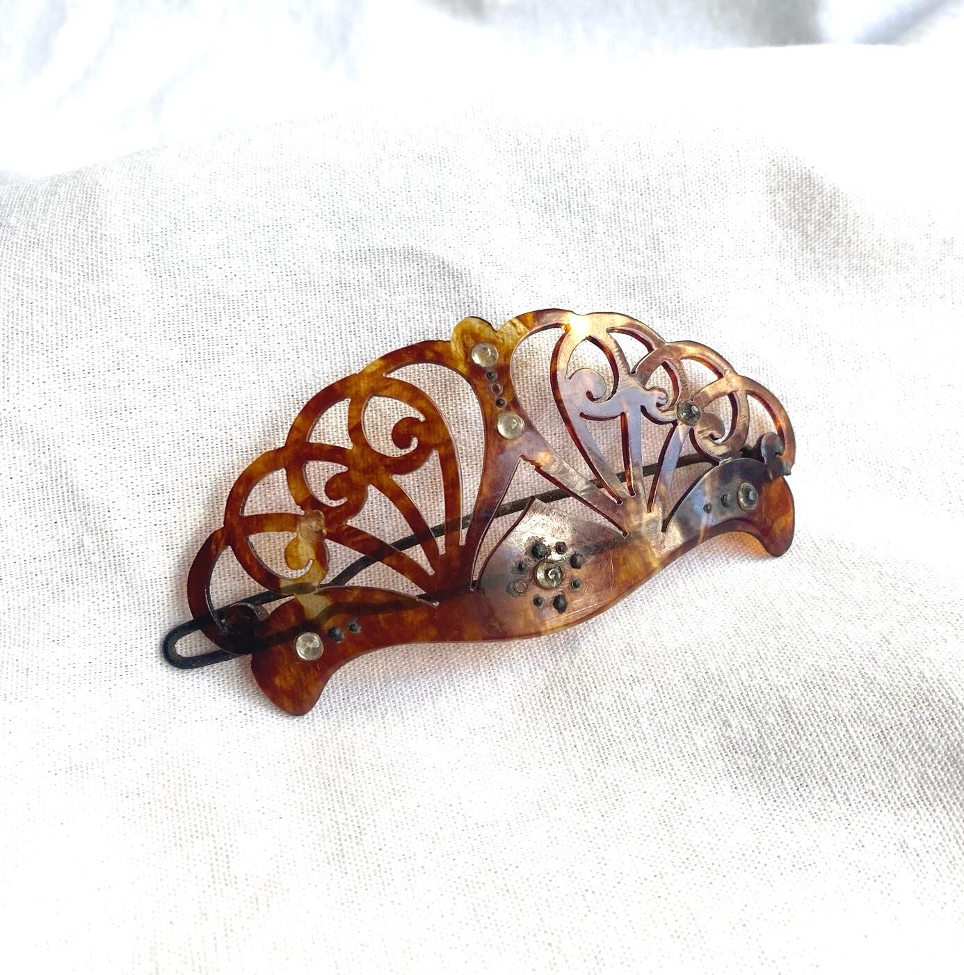 透け感のあるべっ甲風のカラーリングにラインストーンがキラッと輝く1930年代のヘアバレッタ Dead Stock☆