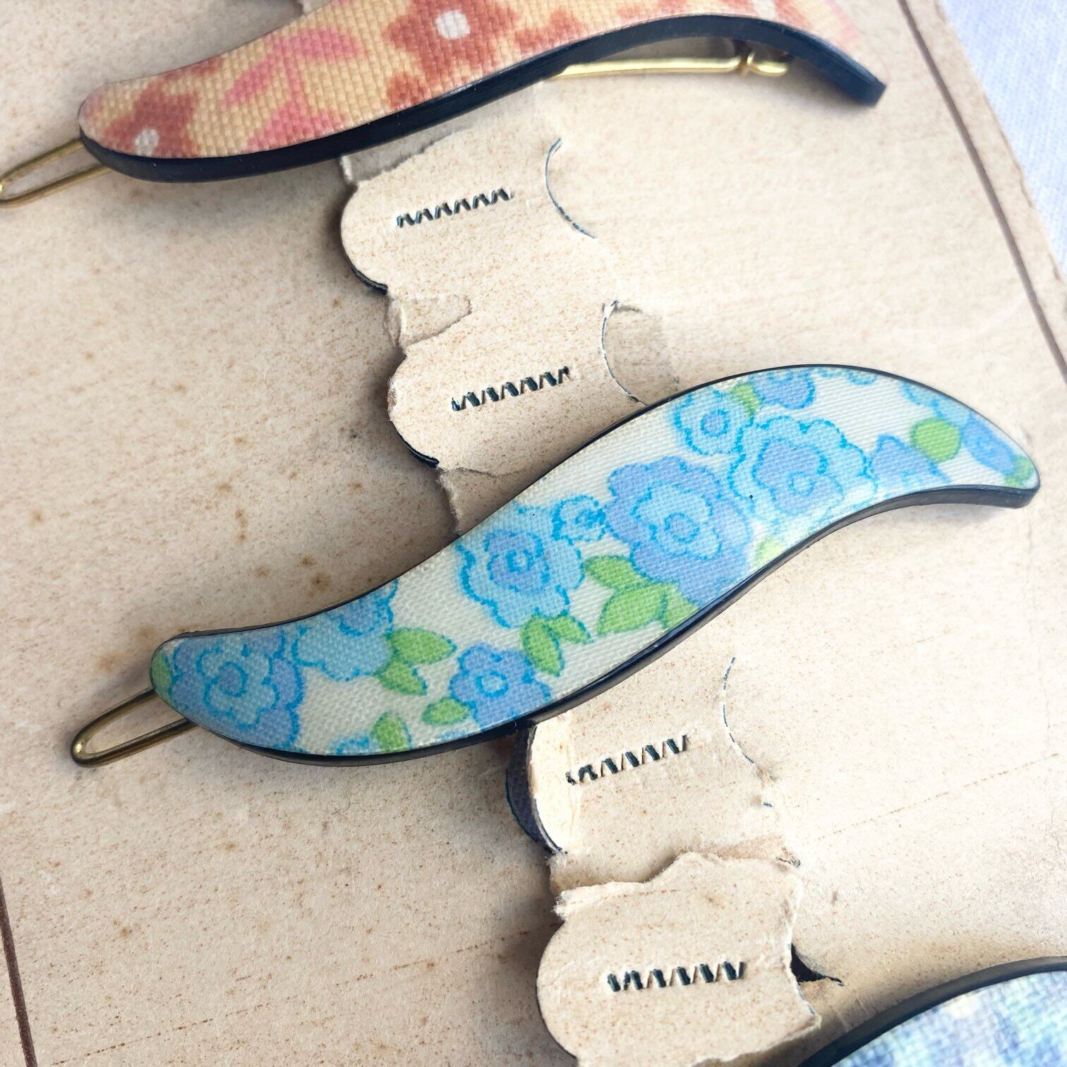French Antique 1950-60’s "Blue × Green" Flower Hair Clip -Dead Stock!-