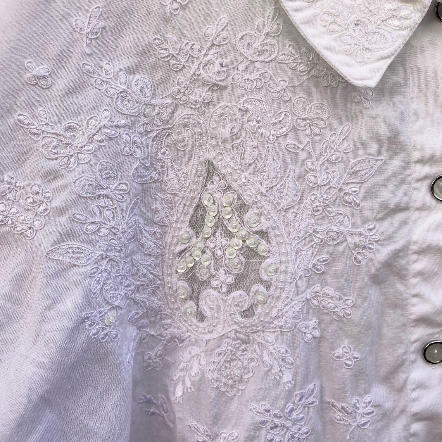 RENE DERHY 1970's "Lace & Beads" White Cotton Blouse
