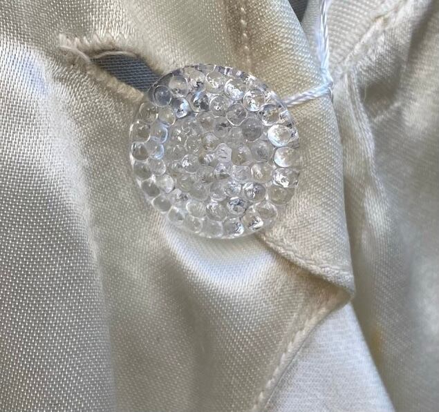 フリルが動きのあるデザインで、ボタンもガラスボタンというこだわり