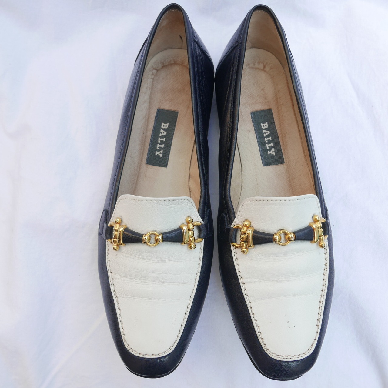 Navy×Whiteのバイカラーにゴールドのビットがさわやかな印象のBALLYローファー