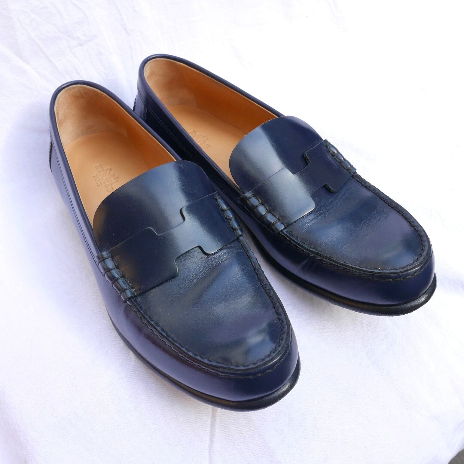 深みのあるネイビーレザーが気品あるHERMESのコインローファー