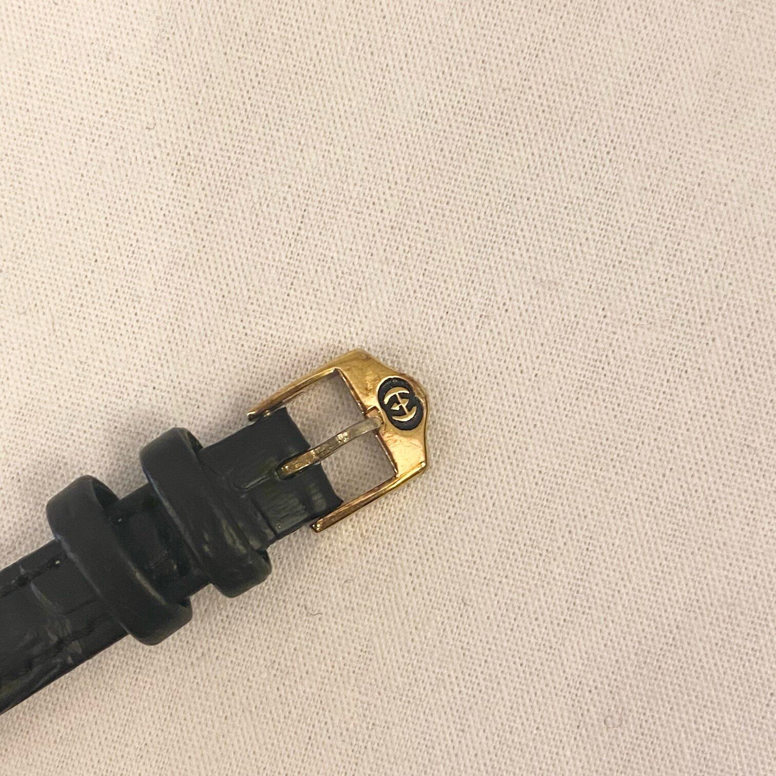 GUCCI "Black × Gold Dial" & Black Leather Strap Watch