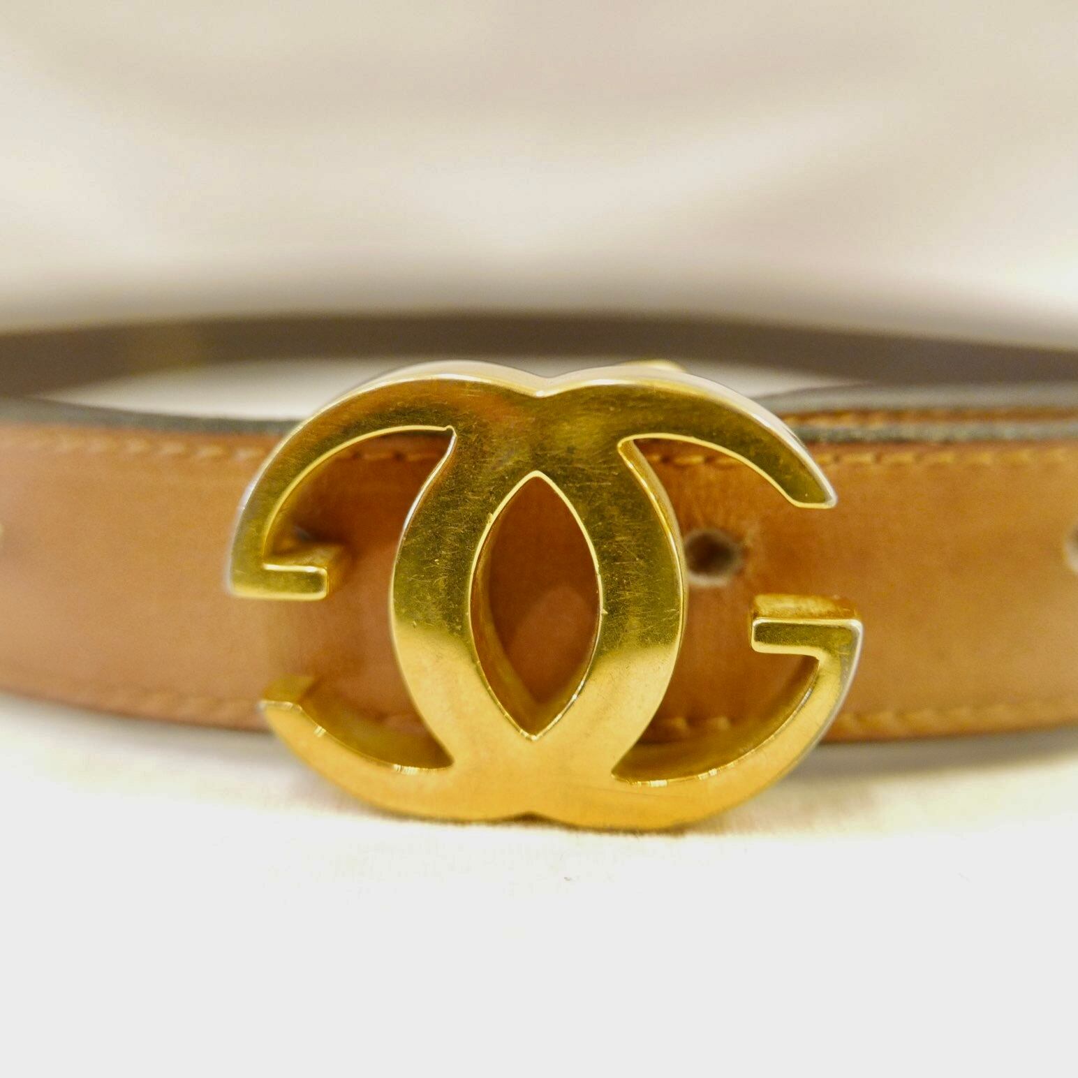 細めのLt.Brownベルトに肉厚なゴールドのGGロゴが映えるGUCCI Vintageベルト