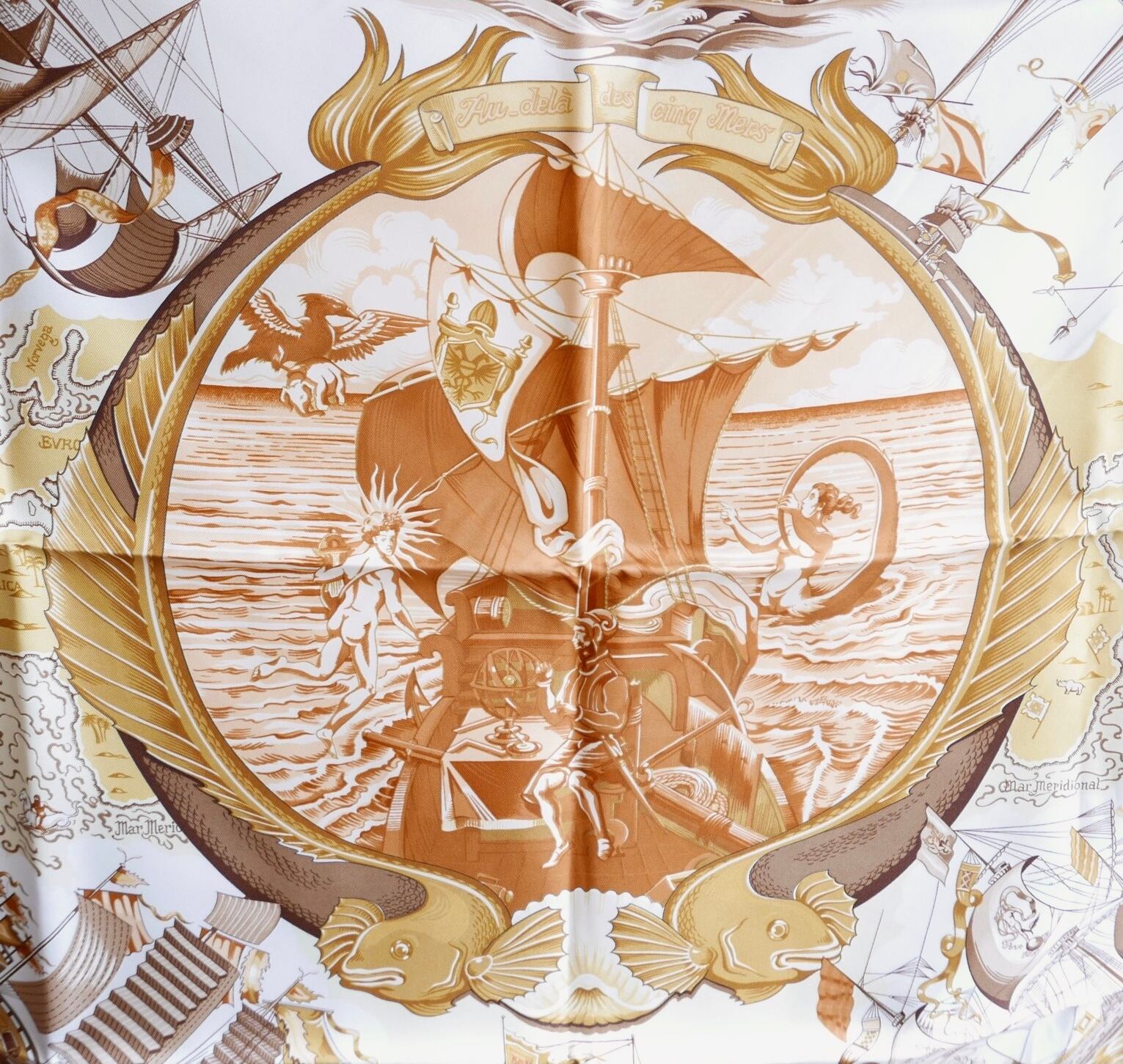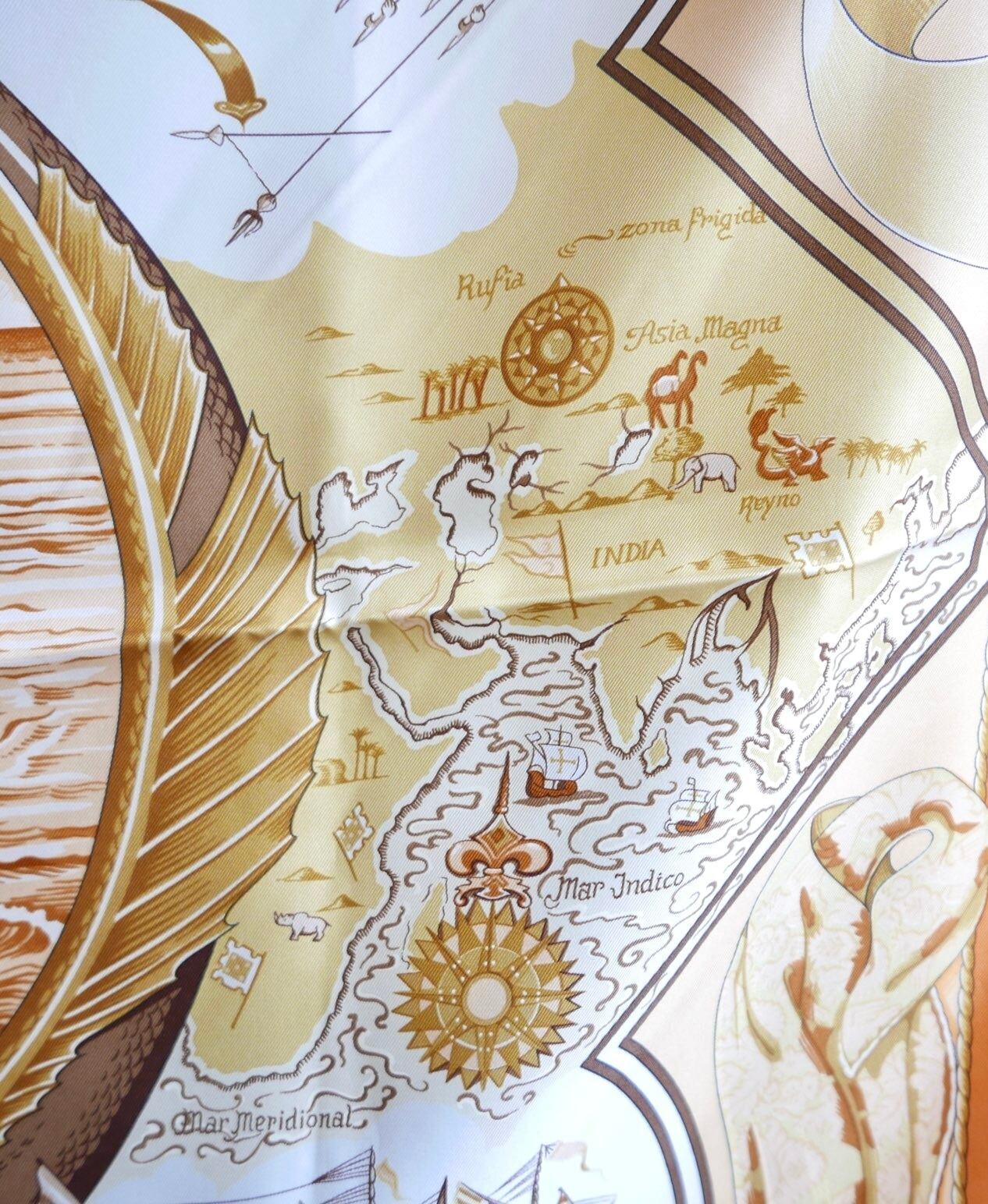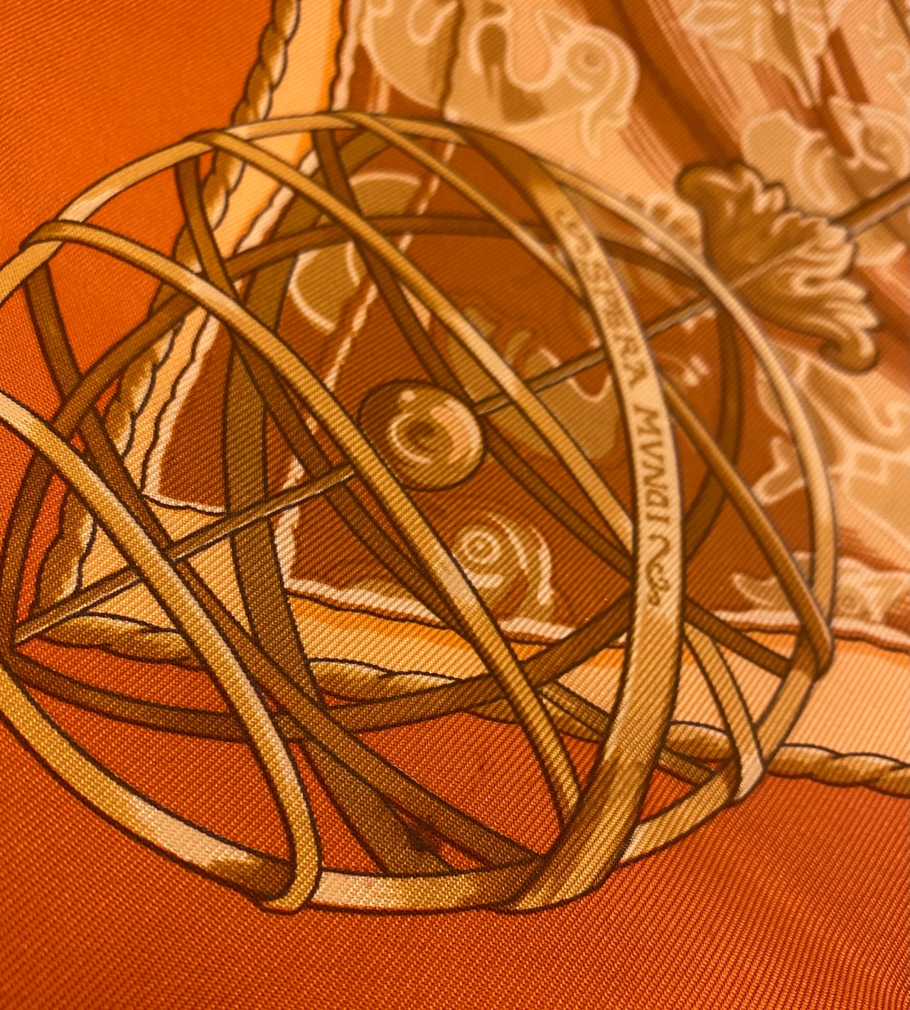 HERMES "Voyage" Print Scarf -Orange Brown-