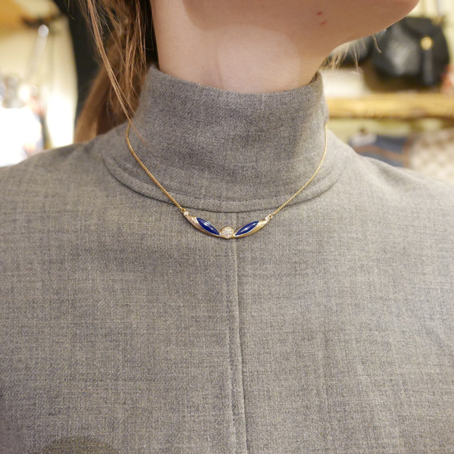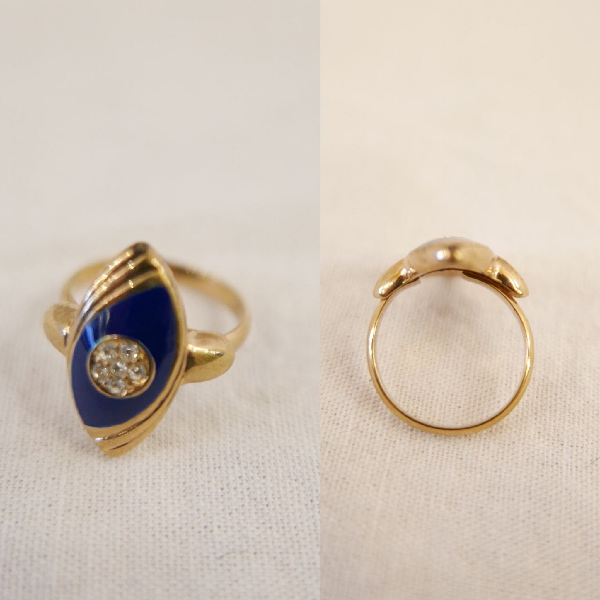 ゴールドとつやのあるエナメルネイビーに、ラインストーンが映える、気品あるデザインです☆