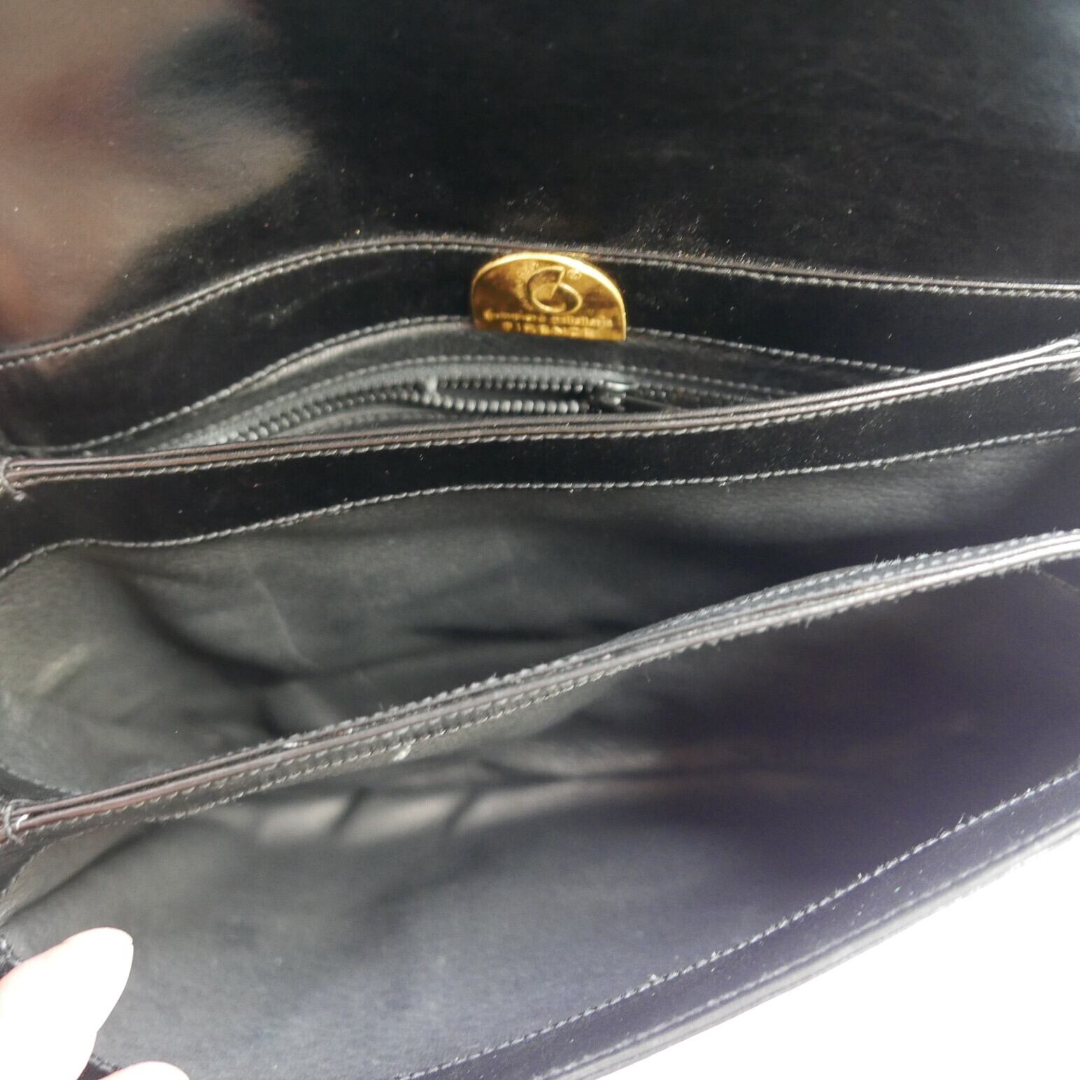 Italy Vintage Black Leather 2-Way Bag -Round Clasp-