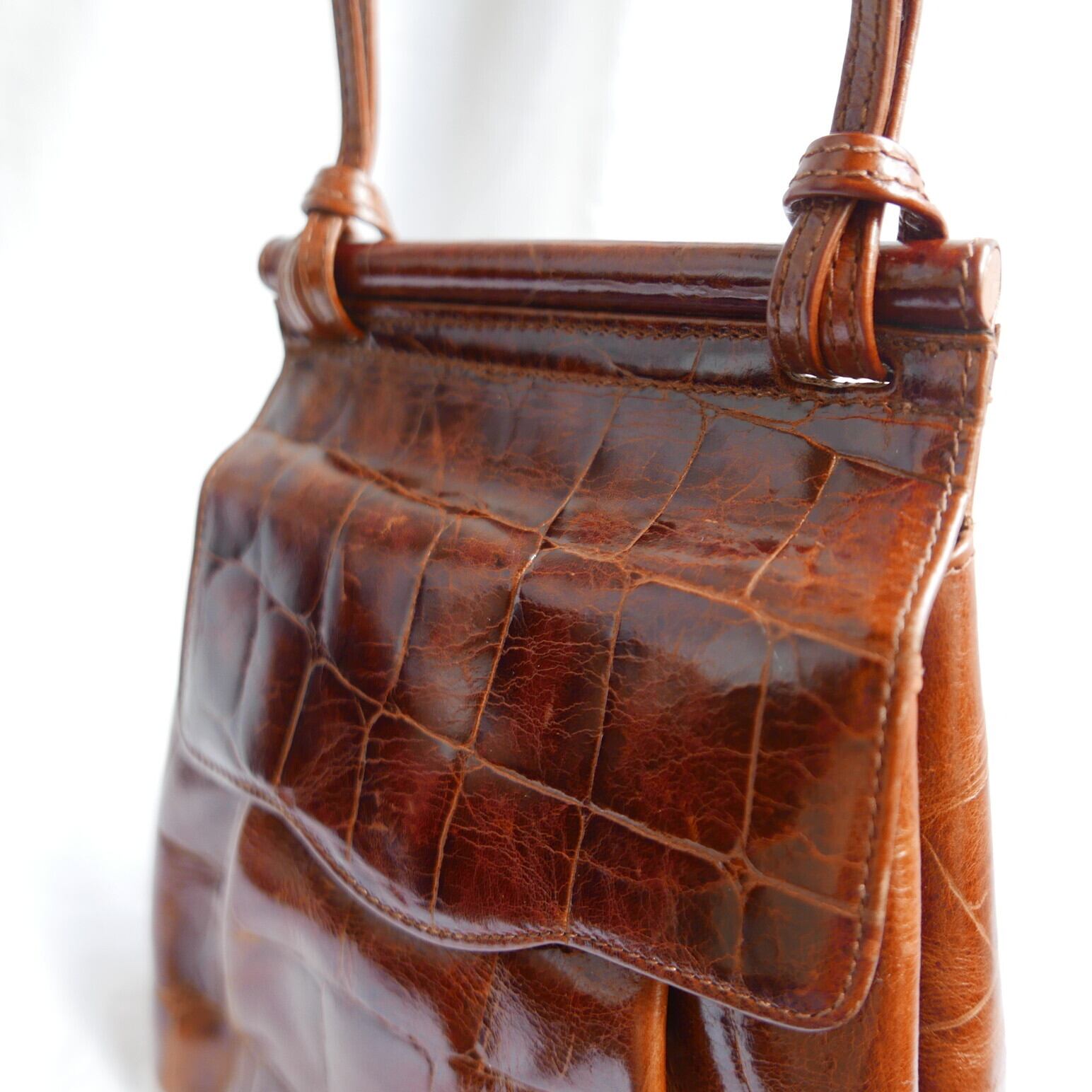 Italy "Embossed" Brown Leather Shoulder Bag