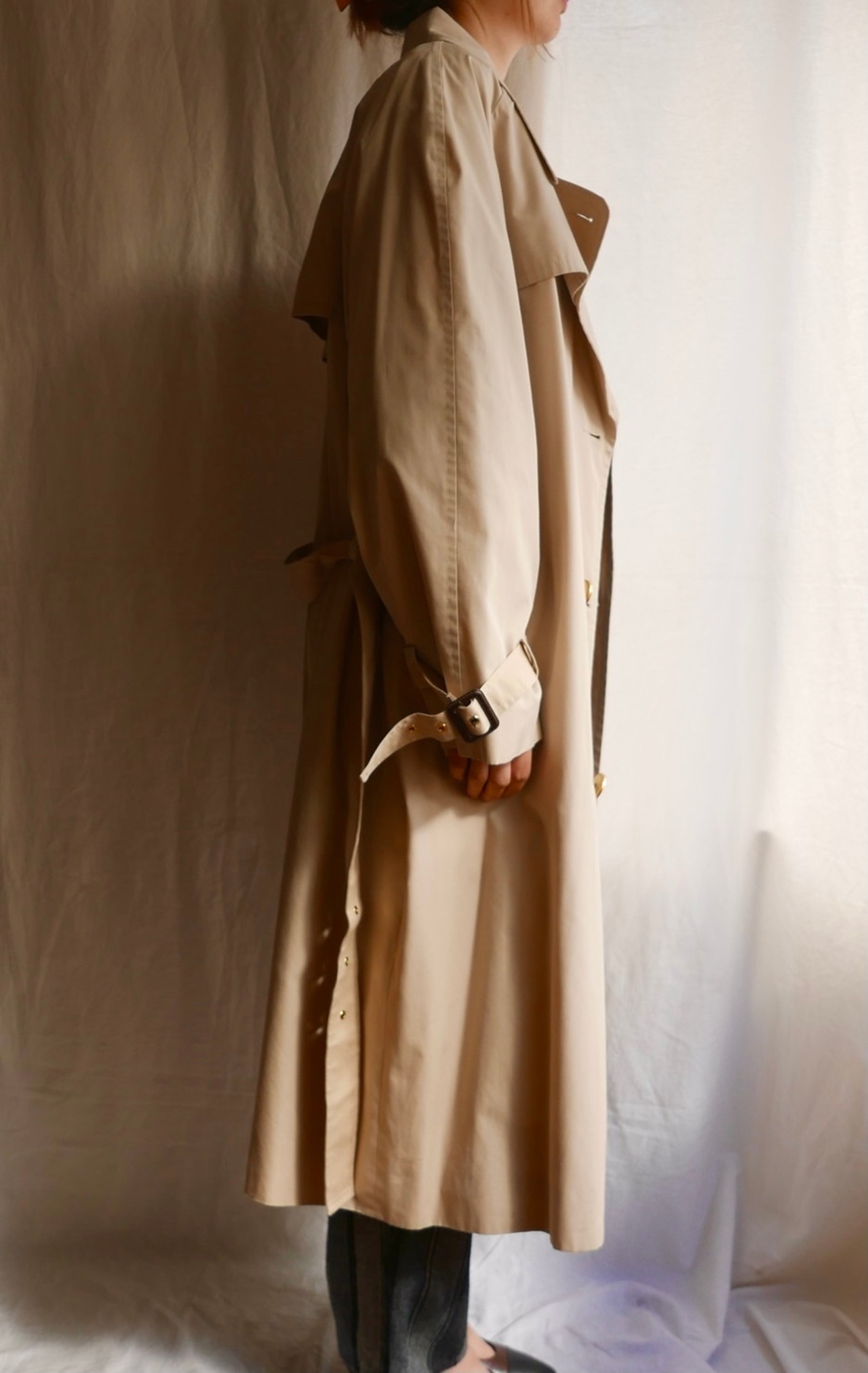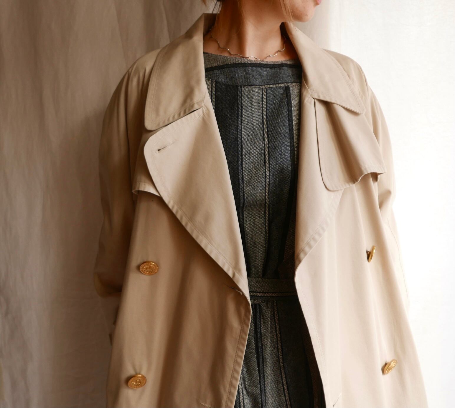 ヌーディーなライトベージュカラーにスペシャルな肉厚ビッグボタンがインパクトのあるCELINE 80's Vintageトレンチ