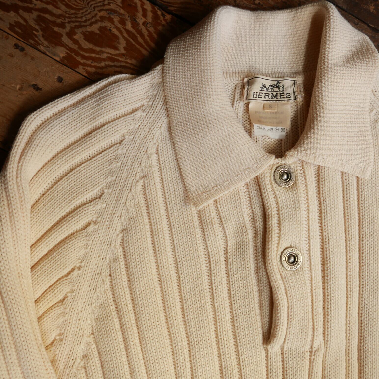 衿付きでぷっくりとした立体感のあるリブが魅力のHERMESニット
