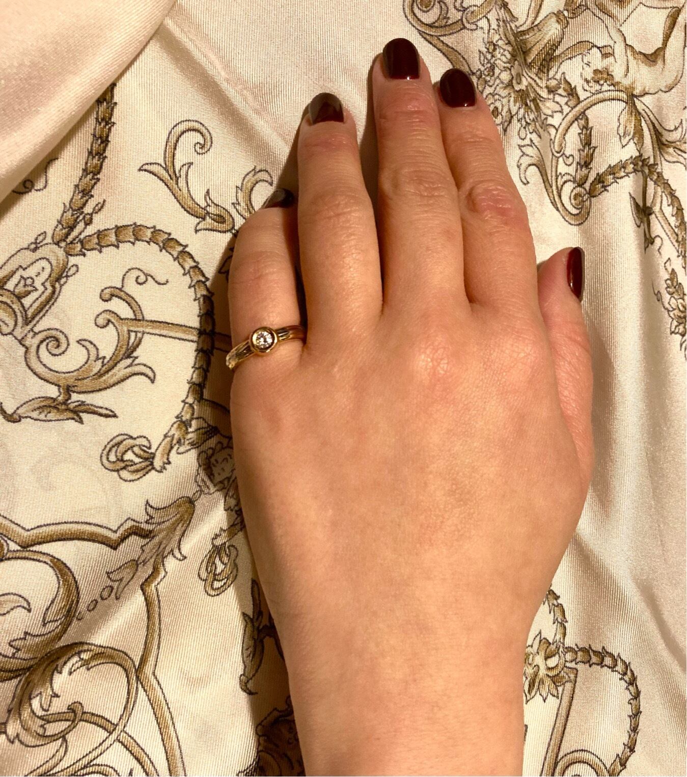 ダイアを囲むゴールドのフチが柔らかく、おだやかな印象です