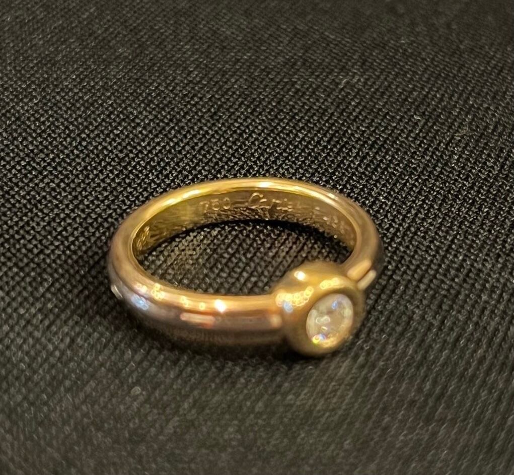 一粒のダイアモンドが光り輝くCARTIER 18金リング.1995年製。