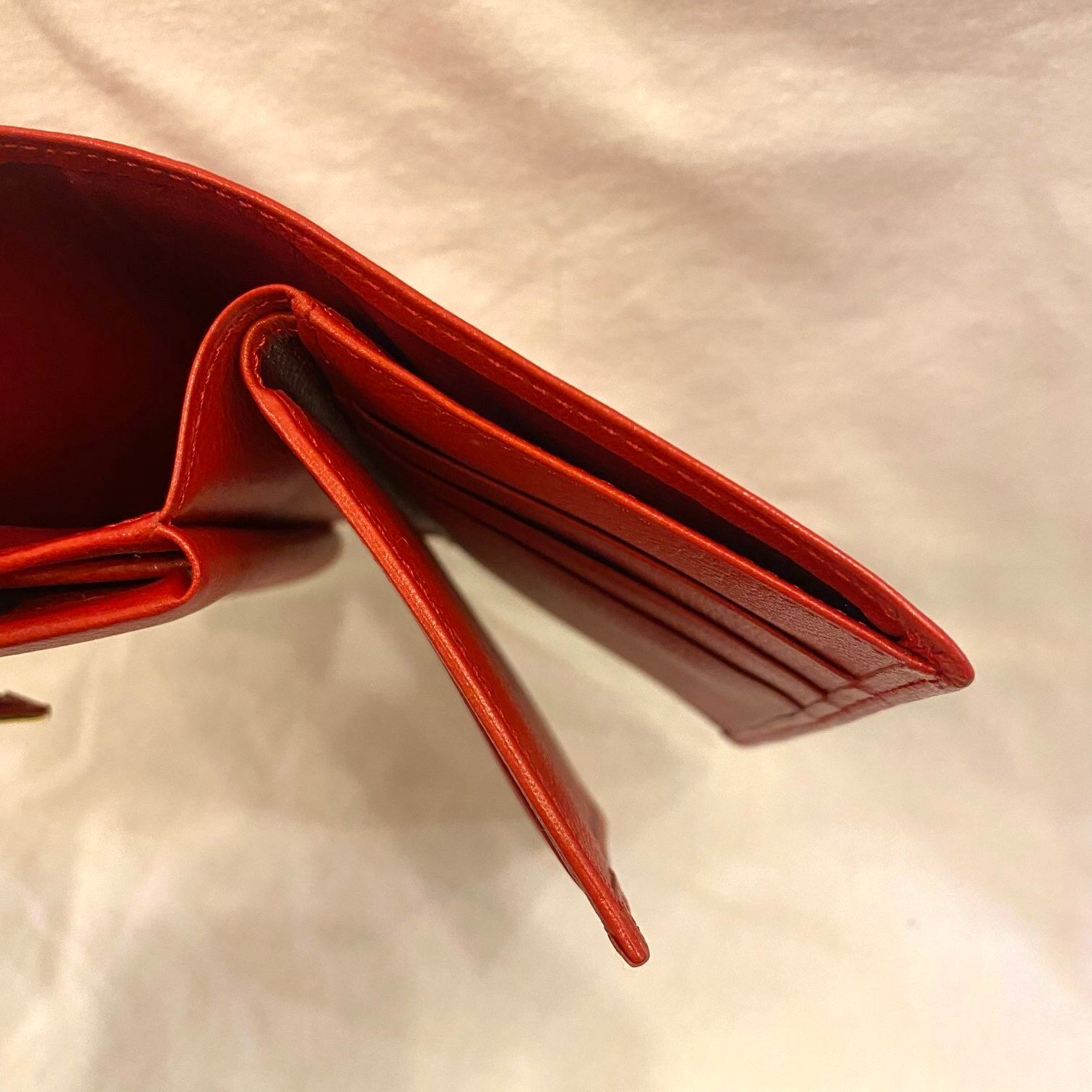 真っ赤なレザーにゴールドの金具が映えるYSL折りたたみ財布