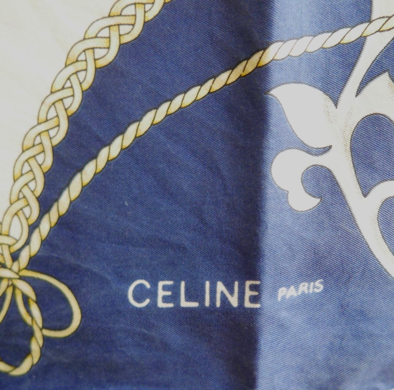 CELINE "Horse Carriage Print" Navy Silk Scarf