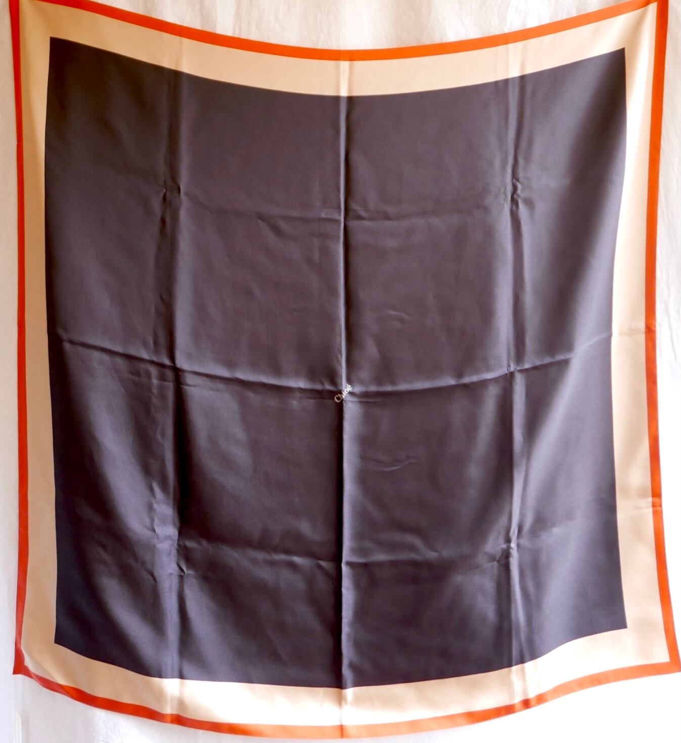 チャコールベースにライトベージュとオレンジのフチどりが効いたクロエのスカーフ!
