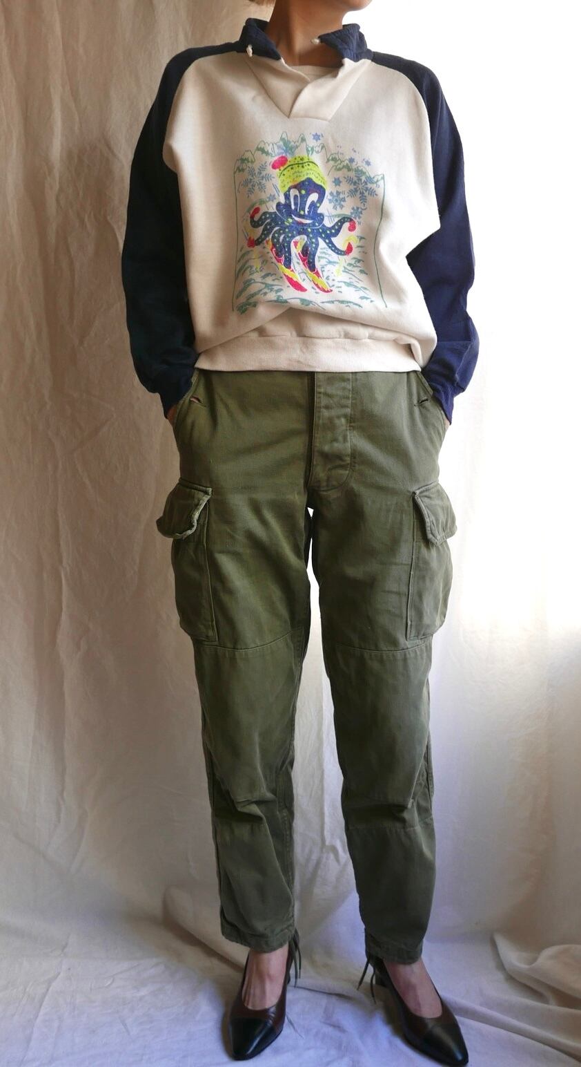 タコがスキーをしているプリントが唯一無二なcuteさ!80's Italy スキースクールのVintageスエット