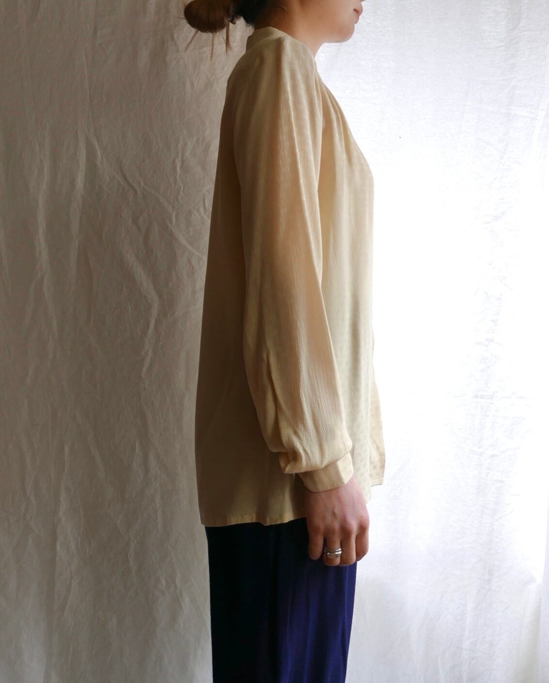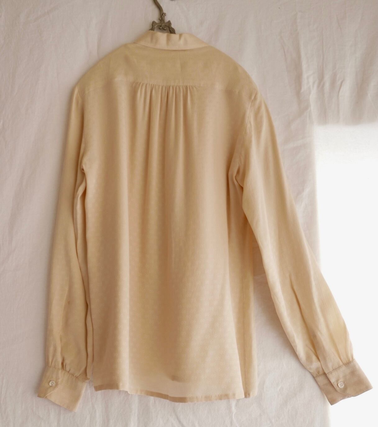 GUCCI 1970's "Tiny GG-Logo" Light Beije Silk Blouse